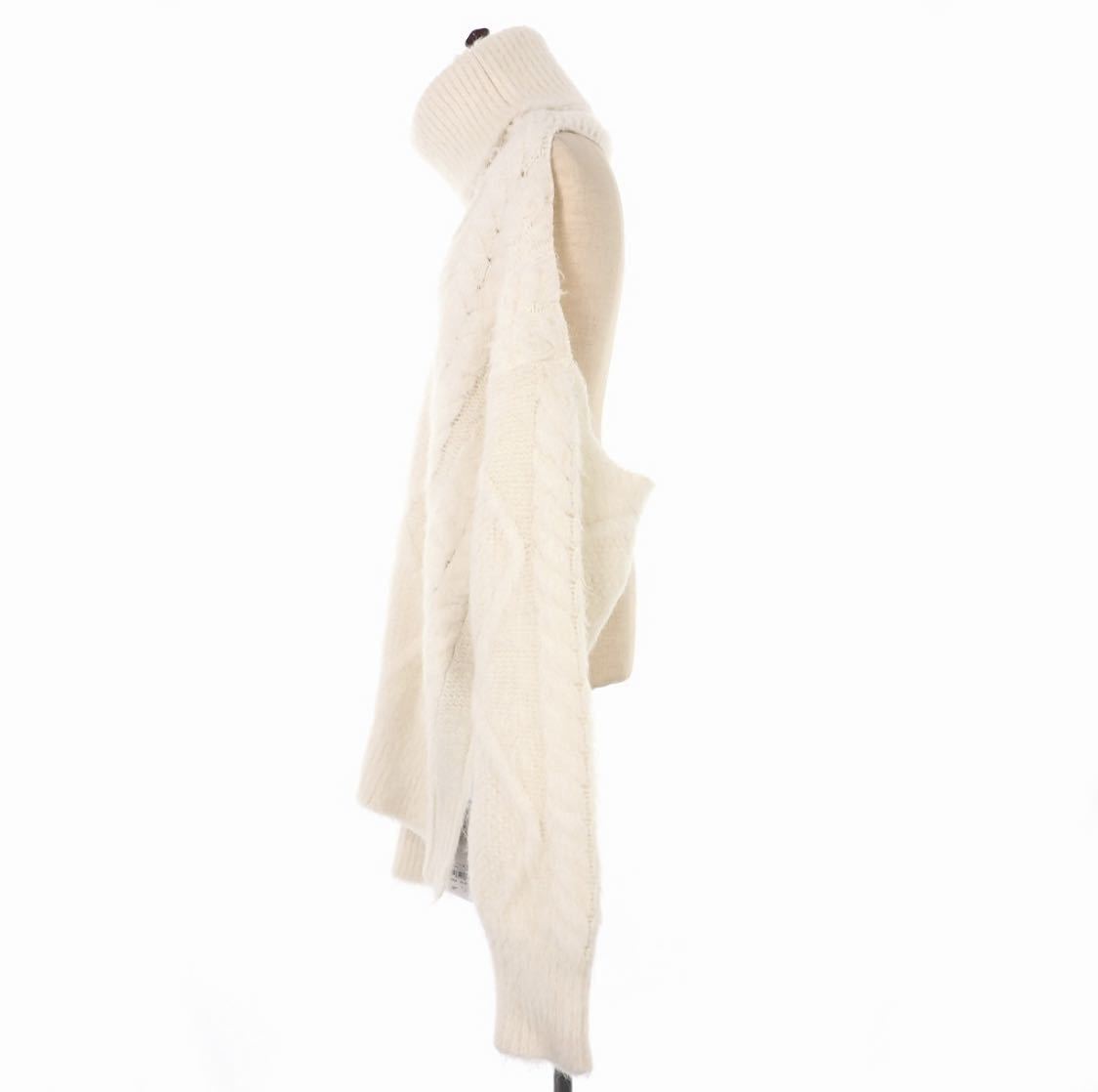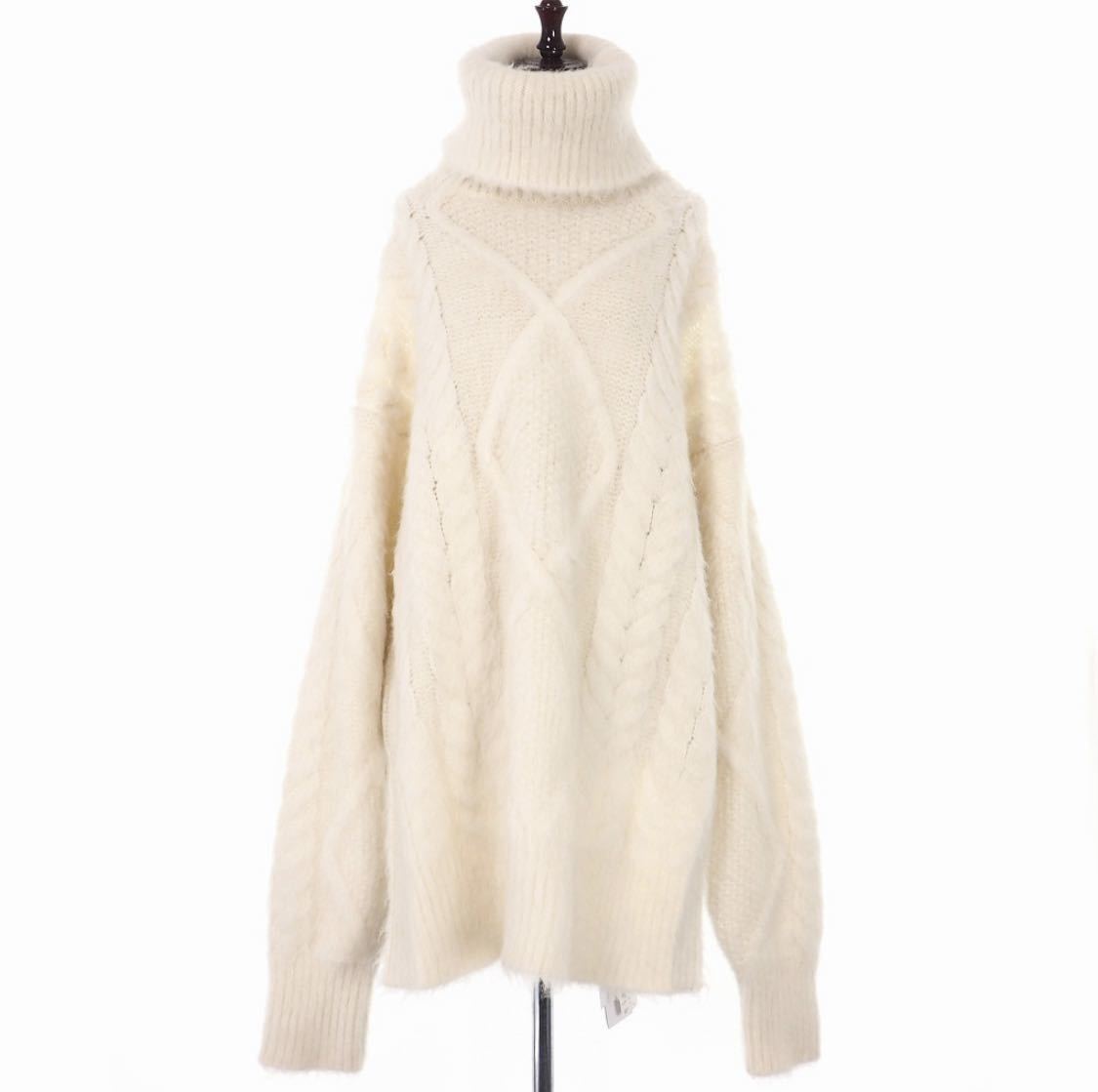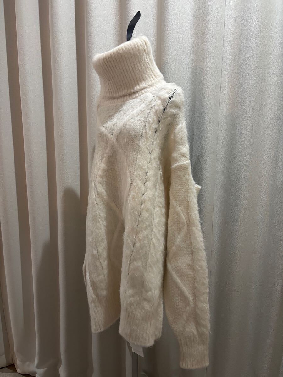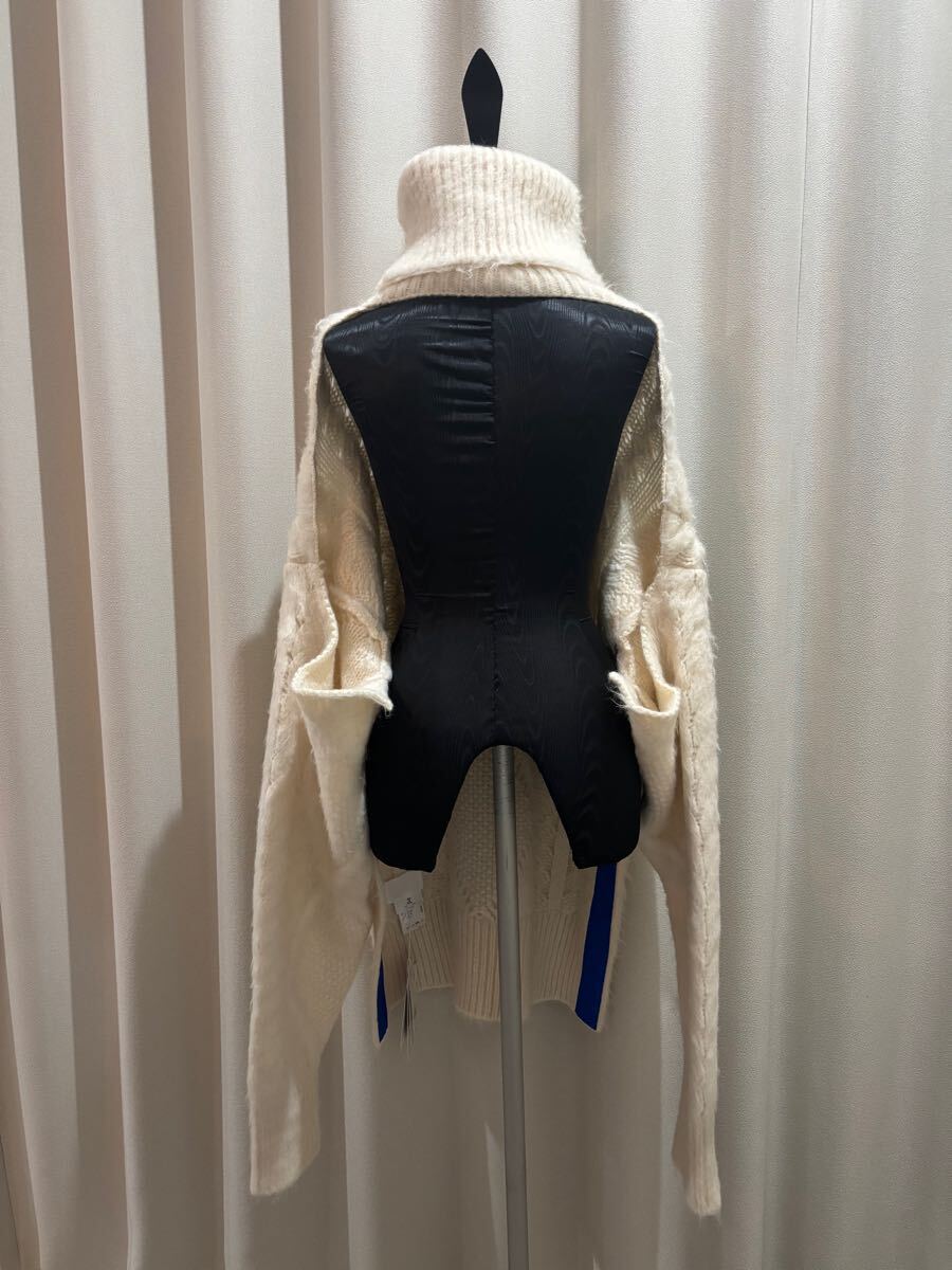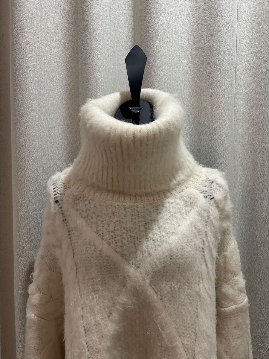 画像のコレクションのルックで、ジャケットの上から着ている白のタートルネックニットセーターと、同じものです。