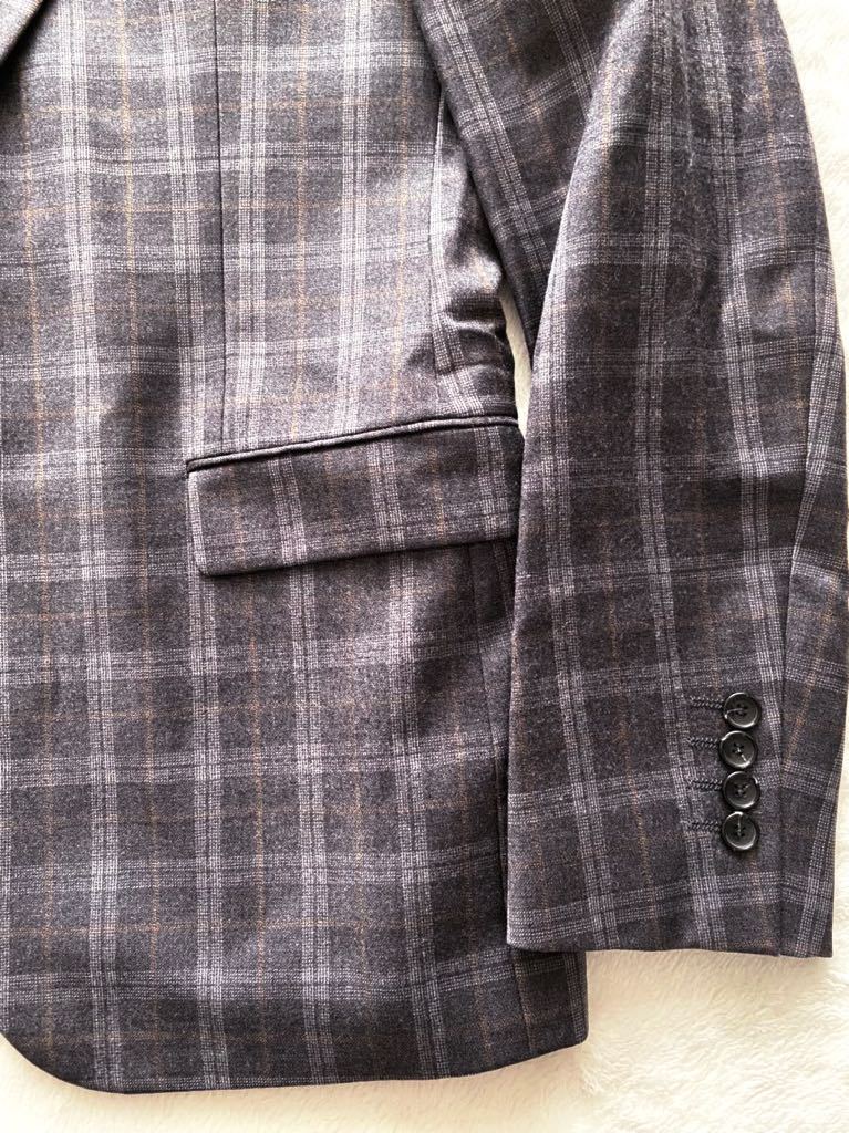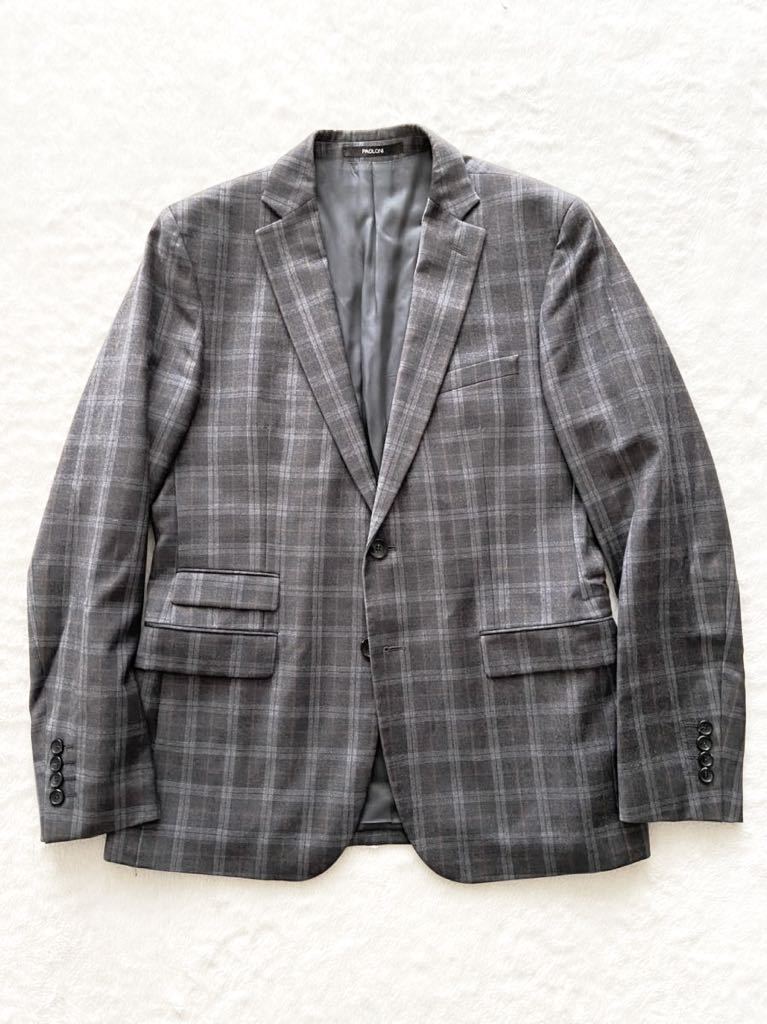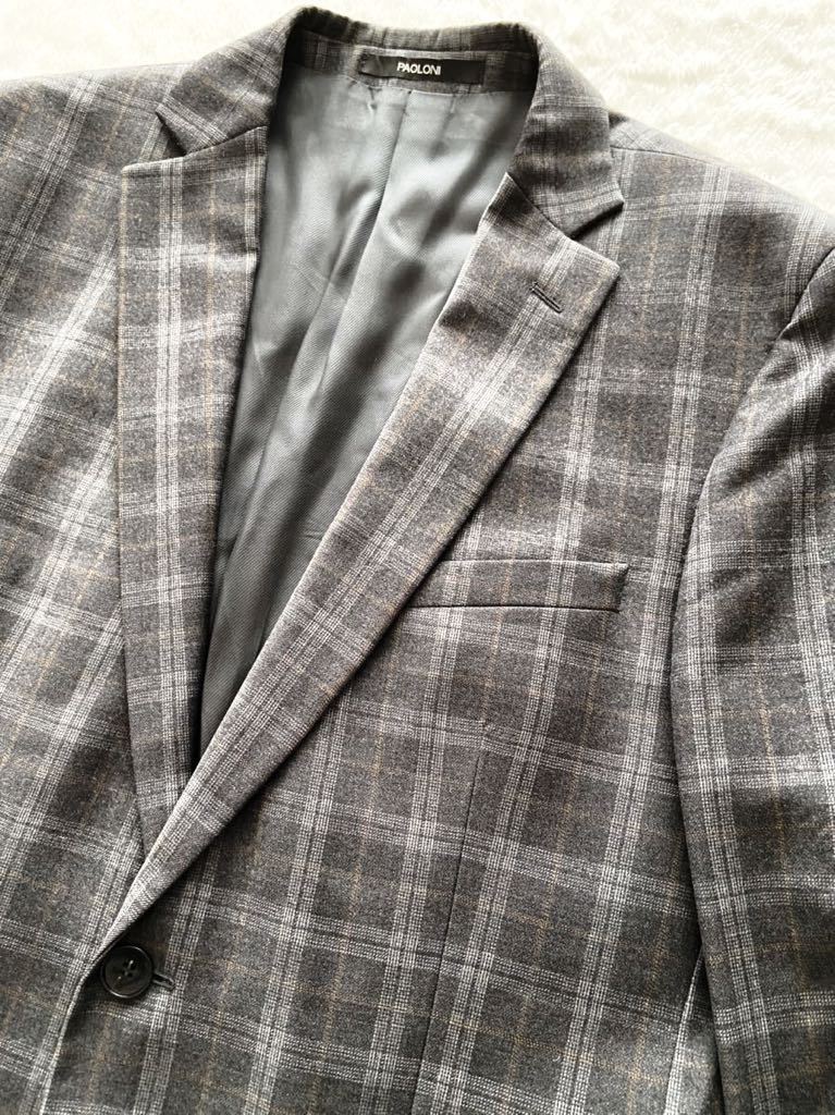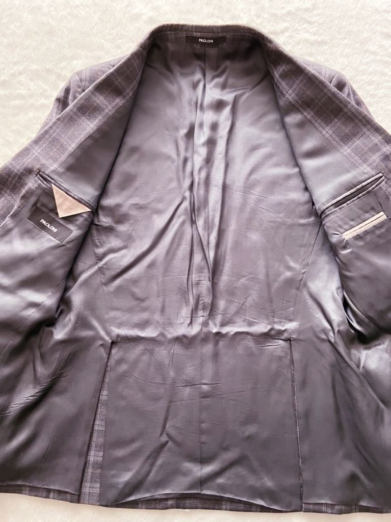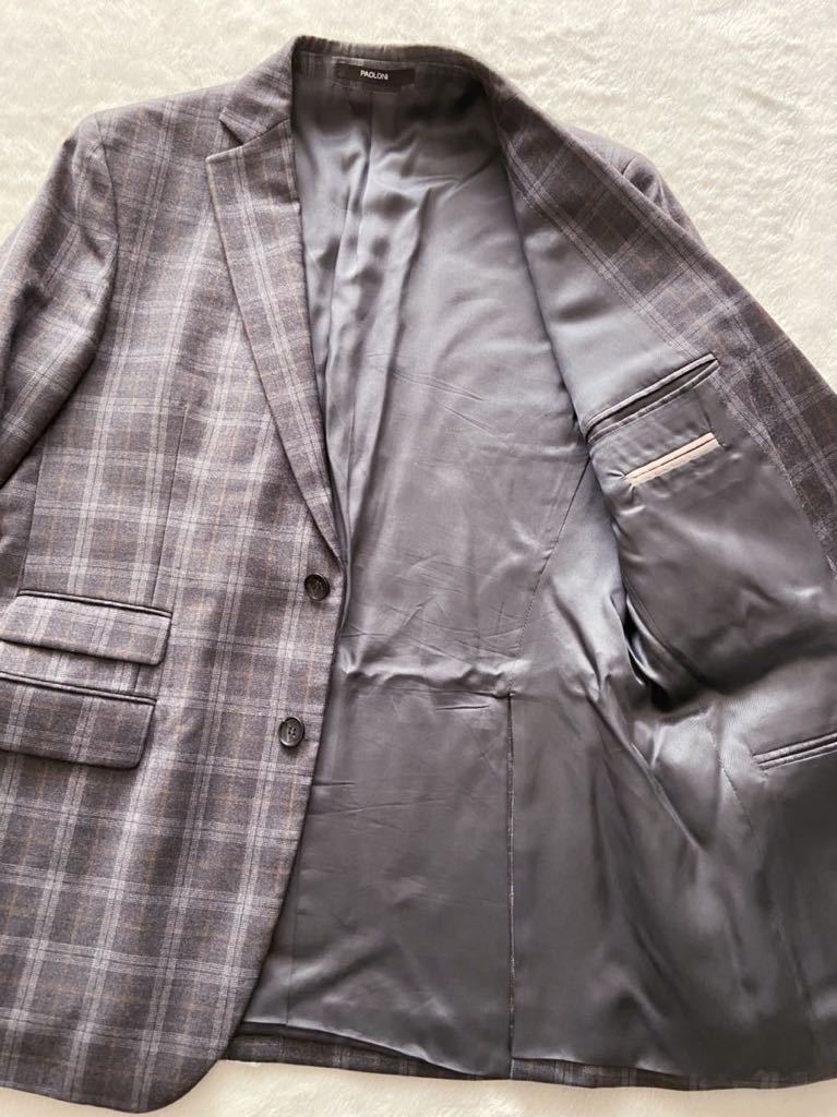 PAOLONI size50 イタリア製ウールジャケット グレー 格子柄 チェック ブレザー パオローニ メンズ
