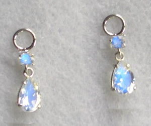 3.0ミリラウンドカットと、4.0×6.0ミリ、ティアドロップのロイヤルブルームーンストーンのフープピアス用のチャームです。