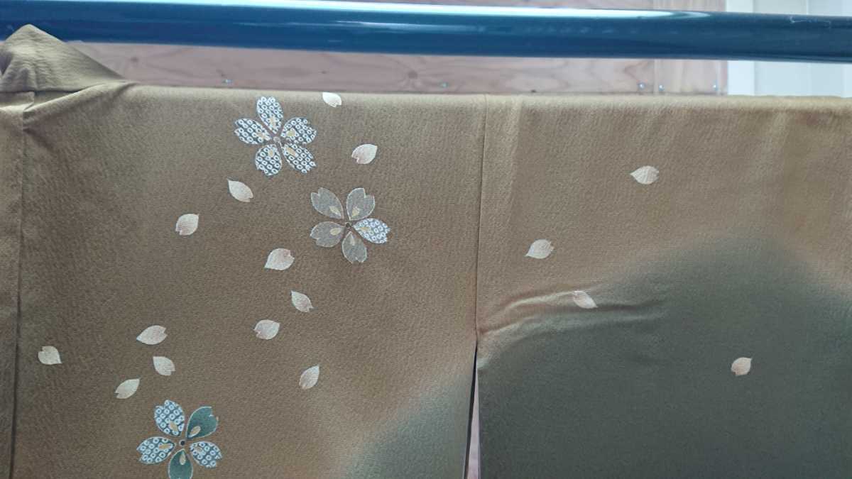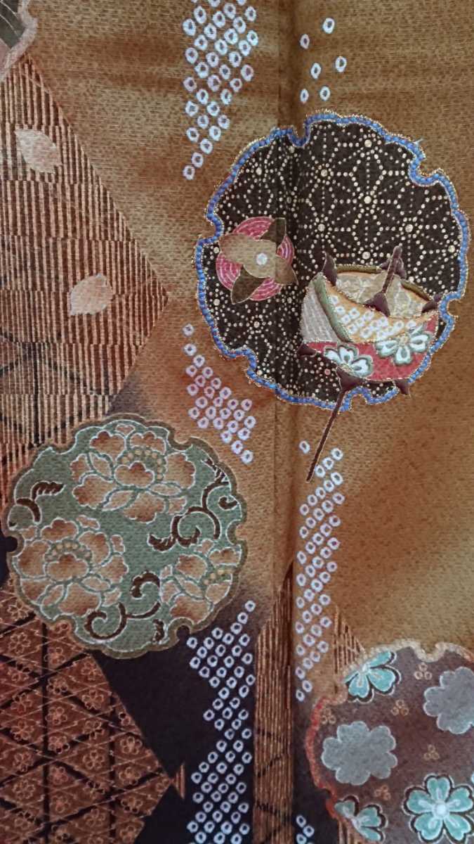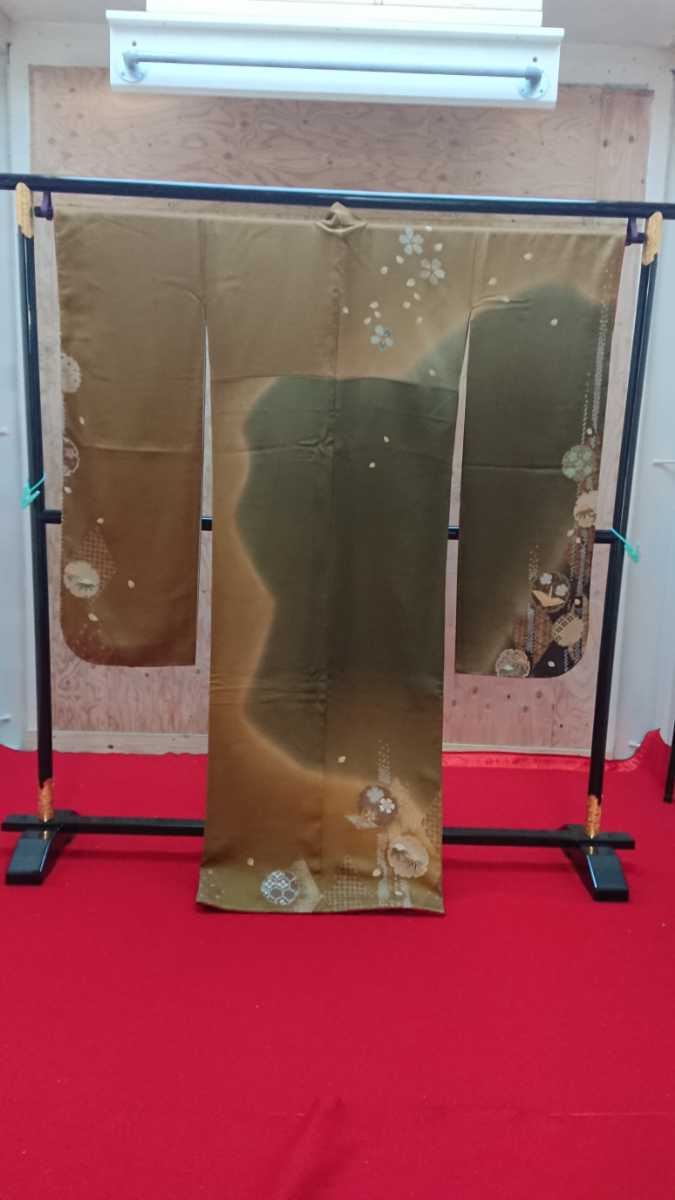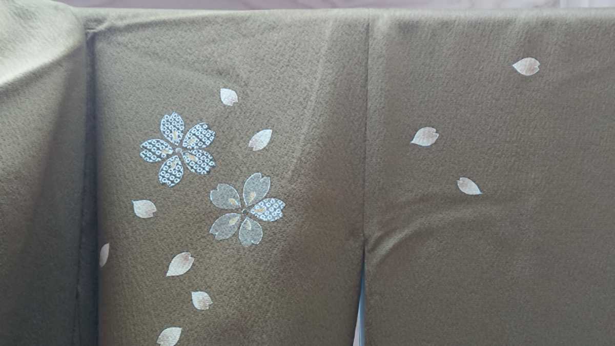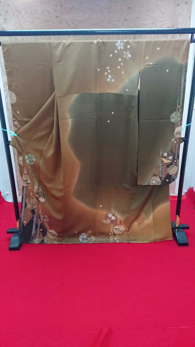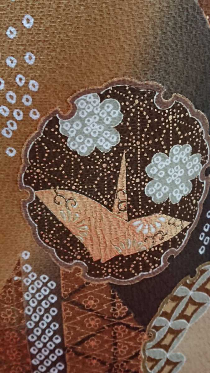 『 井403 振袖 成人式 式典 初詣 絹 花 折鶴 黄土色 深草色 ゴールド 201230』