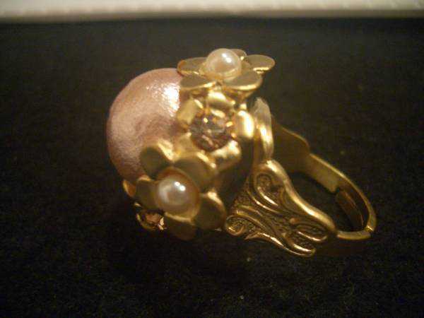 こちらはタグ有り未使用長期保管品です♪ モチーフの直径が2,3センチほど、リングのサイズは11号から13号位かと思います(少し大きくも出来ます☆)♪ 淡いピンク色のコットンパールのまわりにパールやお花、ビジューが巻き付いた重厚感あふれる上品で素敵な商品です(#^.^#) 定価5250円☆ 画像が出品商品そのものですのでよく御覧の上、神経質でない、NCNRで御了承いただける方のみどうぞ宜しくお願いします♪ 他にも同シリーズのイヤリング、ネックレスなどいろいろ可愛い商品を出品しておりますので是非ご覧下さい(^_-)-☆ まとめて取引はごめんなさいですが、同梱は大歓迎です♪ 必ず自己紹介をご覧くださいませ!! | |||