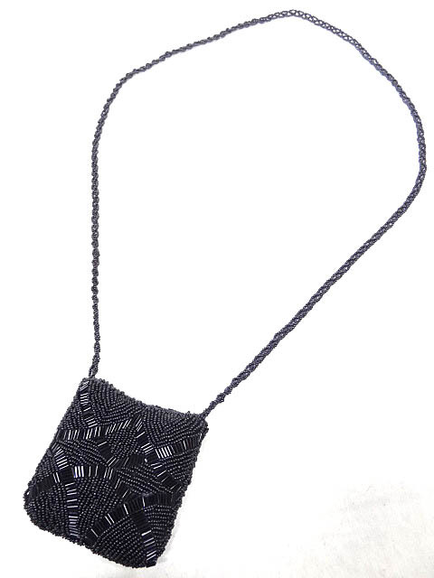 ビンテージ ハンドメイド 黒 ブラック ビーズ 全面 装飾 スモール ショルダー バッグ サコッシュ XS アクセサリー パス ケース レア 珍品