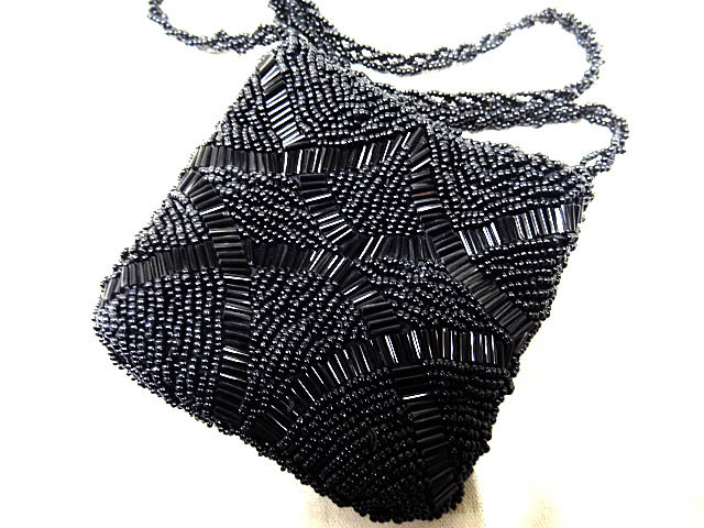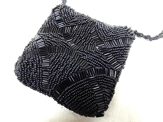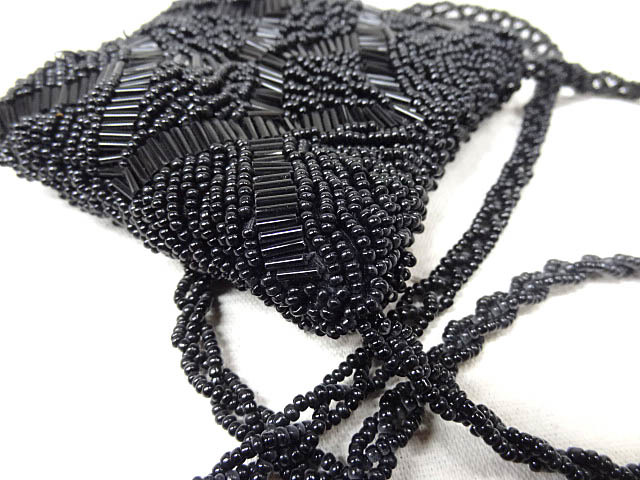 全面が黒ビーズ装飾が施されたとても可愛らしいバッグです。サイズがかなり小さいので物を入れるためのバッグという意味合いよりは身に着けるアクセサリーとしての使い方になると思います。ただ身に着けるだけでとても目を引くアイテムです