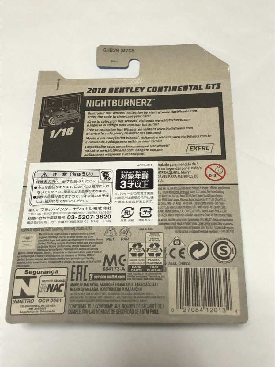 2018 ベントレー コンチネンタル GT3 BENTLEY CONTINENTAL / ホットウィール (未開封) ミニカー になります。