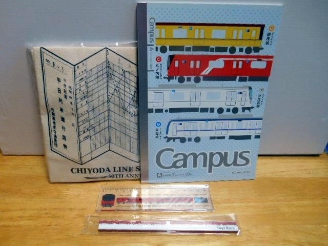 エコバック、ノ-ト1冊、丸の内線の鉛筆、丸の内線定規です。
