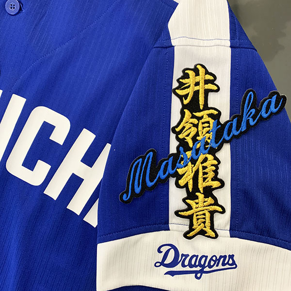| 商品説明 | 中日 ドラゴンズ 井領雅貴選手のネーム、アイロン接着用刺繍ワッペンの出品です。 アイロンにて簡単に接着可能♪♪ ※写真のユニフォーム等、他の装飾品はついておりません。 |