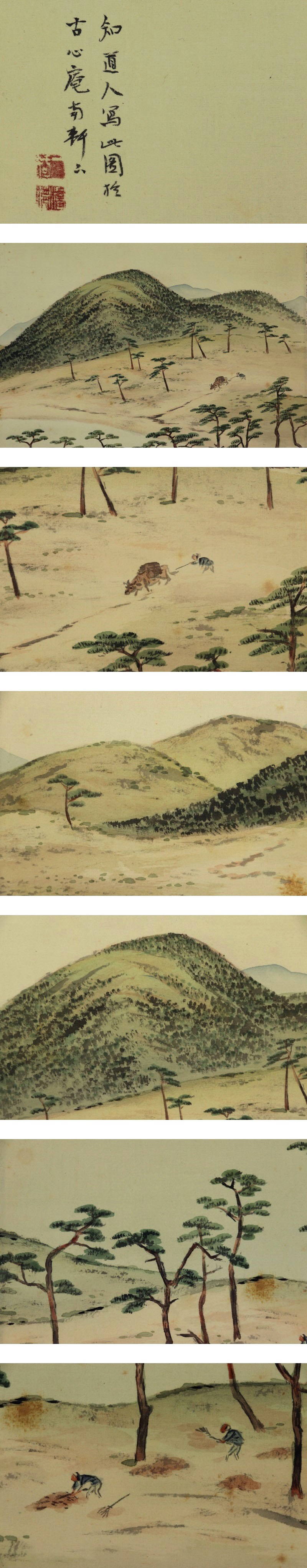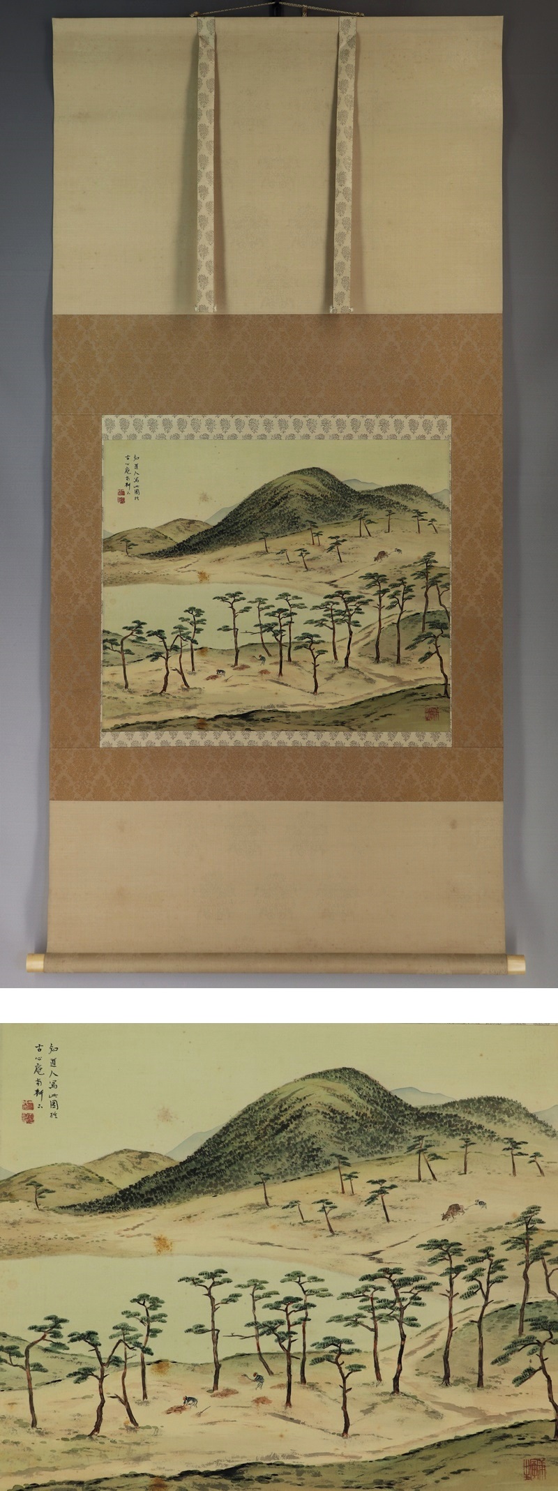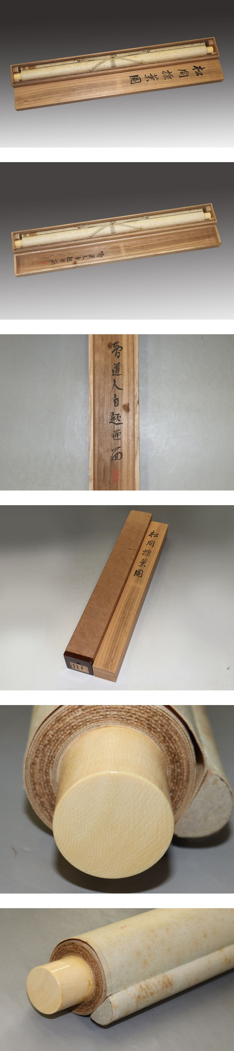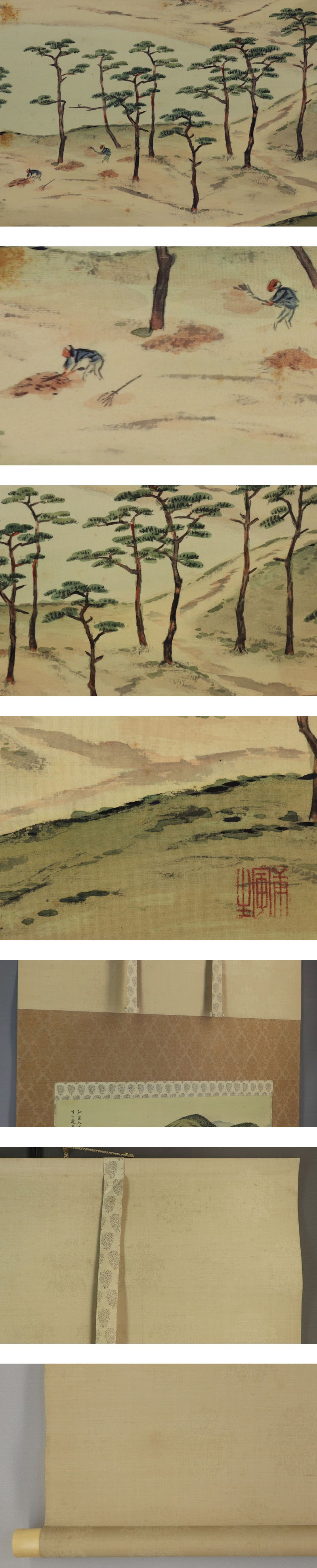 | №2010155【真作】矢野橋村【松間採葉図】◆絹本◆共箱◆二重箱◆掛軸 | |