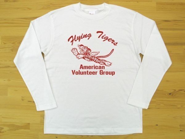 フライング・タイガース 白 5.6oz 長袖Tシャツ 赤 2XL 大きいサイズ ミリタリー AVG Flying Tigers U.S. AIR FORCE