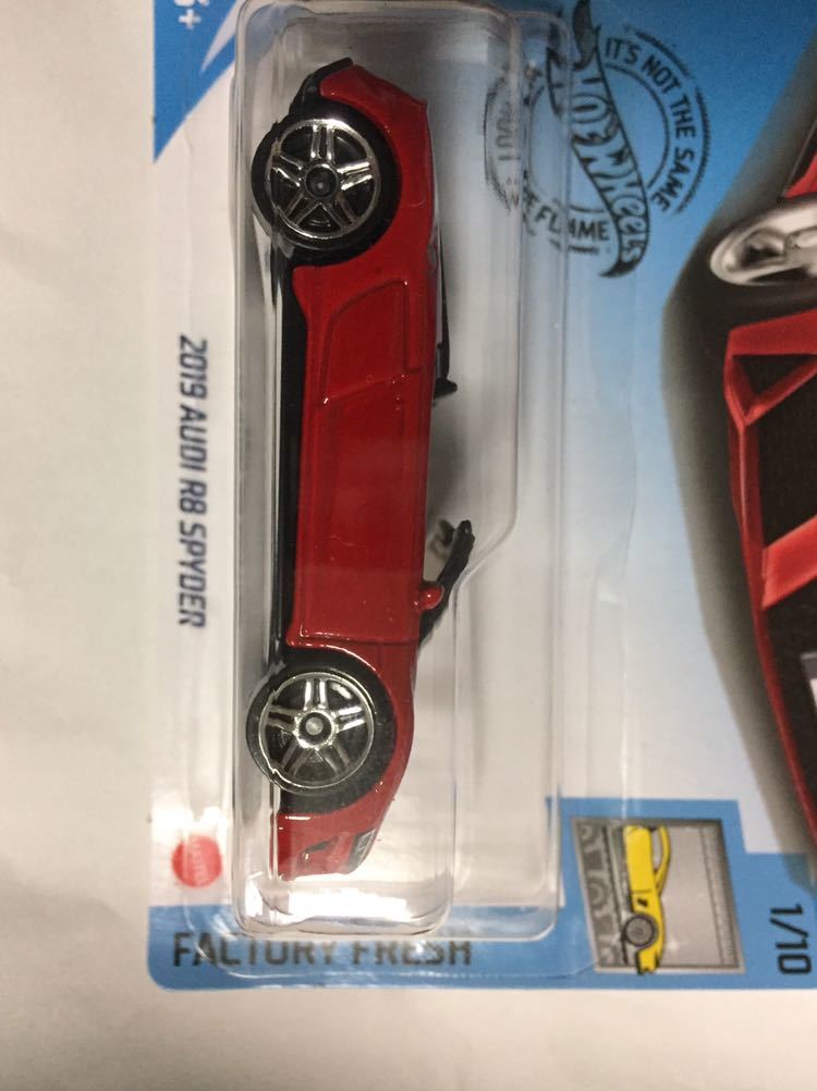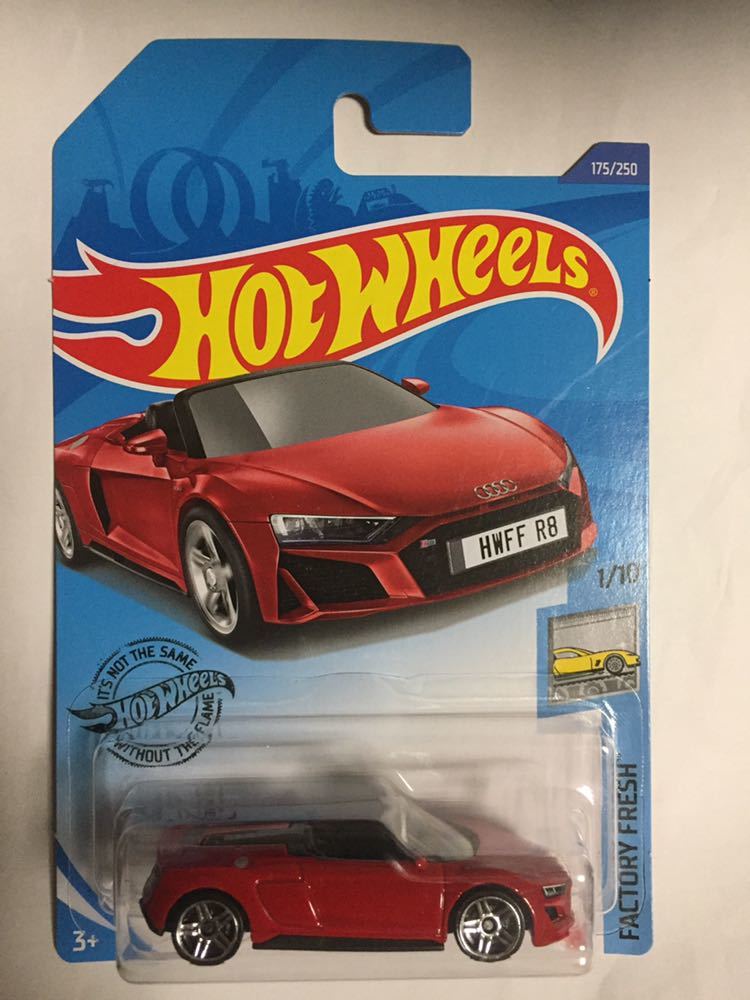 ホットウィール・2019 アウディR8 スパイダー 赤 (他も出品中)。未開封ですが、パッケージには擦れ等、有りますので御了承下さい。