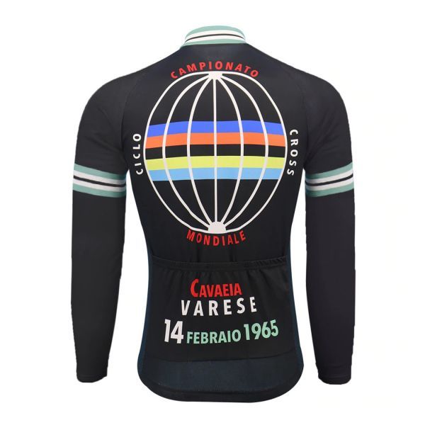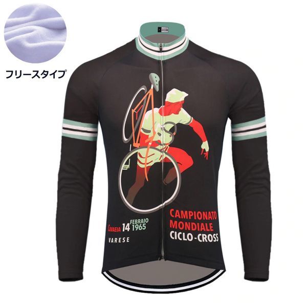新品 長袖 裏起毛 サイクルジャージ レトロデザイン No36 S イタリア フルジップ ウェア メンズ サイクリング フリース ロードバイク MTB