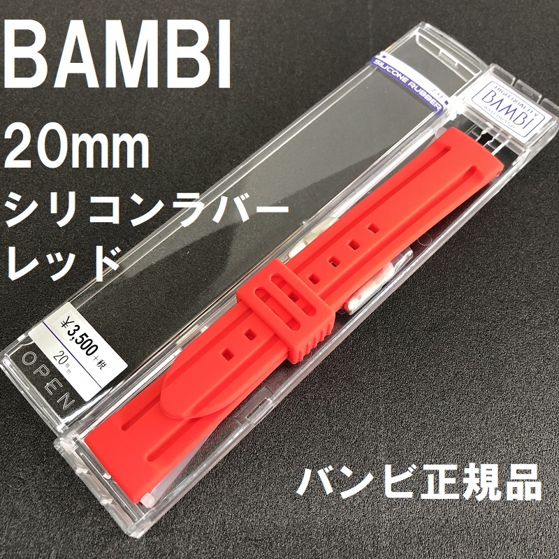 送料無料 バネ棒付き★特価 新品★BAMBI シリコンバンド 20mm レッド 赤 時計ベルト ステンレス美錠★バンビ正規品 定価税込3,850円