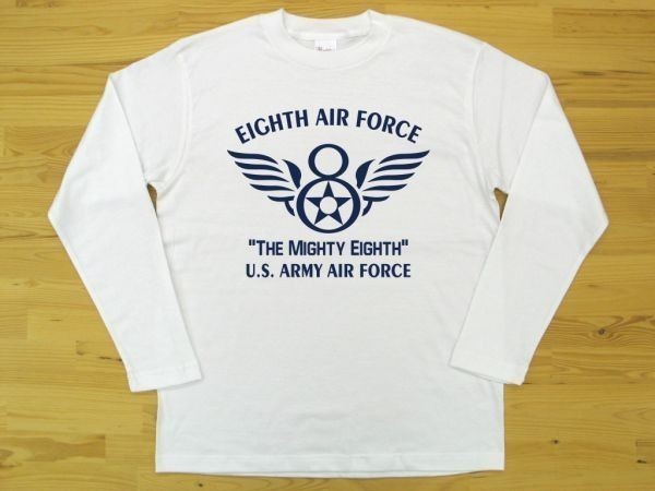 8th AIR FORCE 白 5.6oz 長袖Tシャツ 紺 2XL 大きいサイズ ミリタリー U.S. ARMY AIR FORCE the mighty eighth