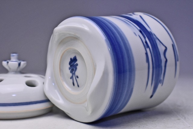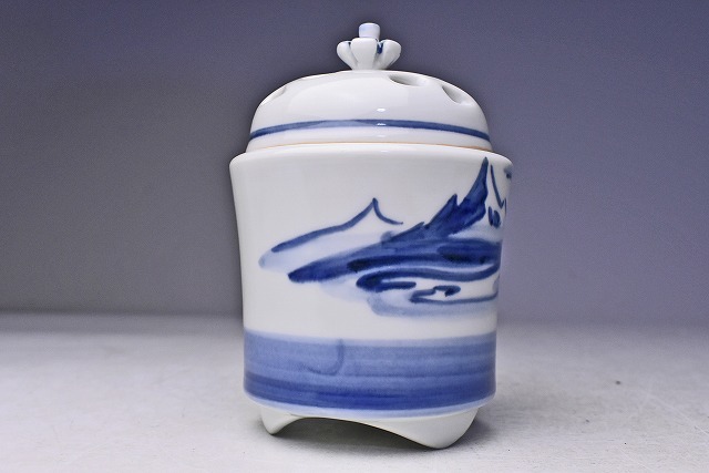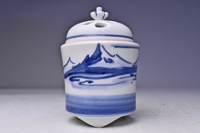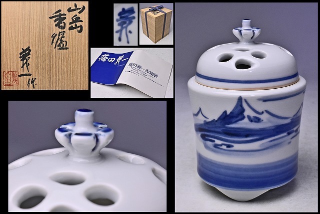 篠田義一 ★ 山岳 香炉 ★ 共箱 個展DM ★ 染付 北アルプス ★ 師:人間国宝 近藤悠三 ★ 香道具 ★