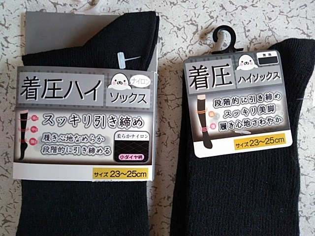 着圧 ハイソックス  2足 23~25cm 小ダイヤ柄&無地