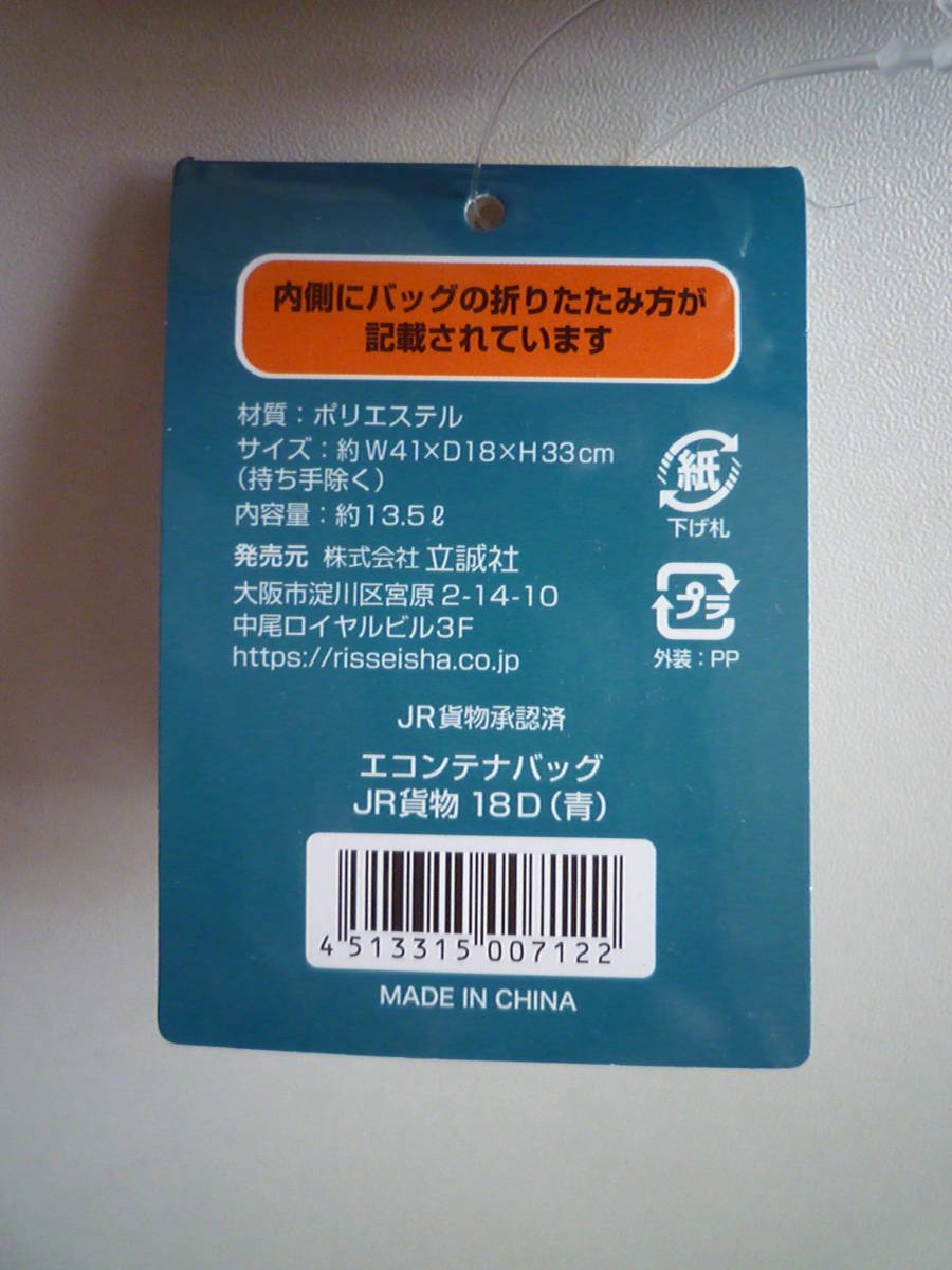 | JR貨物 18D エコンテナバッグ ポーチ付き 未使用未開封品 | |||||||||||