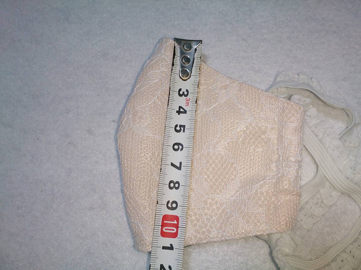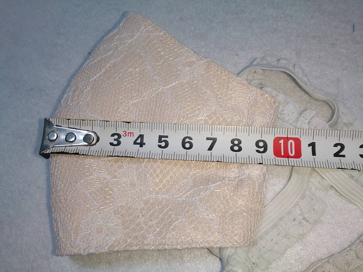 | ご覧頂きましてありがとうございます。 ★ハンドメイド●リボン付き レース製 マスク レギュラーサイズ 1枚 色:ベージュ サイズ:ヨコ約190mm高さ約110mm ノーズフィットはありません。 サイズは通常販売しているマスクのレギュラーサイズを参考に作成しています。 -Handmade in Japan 新品未使用です。 自宅縫製による美しいデザインのマスクです。 表の素材は布帛の上からレースを刺繍した生地になります。 裏生地はソフトなトリコット素材を使用しています。 そこにリボンをあしらったとてもエレガントで素敵なマスクになります。 ゴムもレースのゴムを使用しています。とても可愛らしいデザインです。 立体で口周りを大きく作っているので空間ができ、長時間使用しても苦しくありません。 ☆手作りですので、歪みやズレなどがある場合もございます。 ご理解をお願いいたします 発送の際には、なるべくコンパクトに梱包させていただきますのでご了承ください。 こちらの商品は限定一品になりますので、お探しだった方は 悩んでる間に落札される可能性もありますのでお早めに! あなたのご入札、心よりお待ちしております♪ 【諸注意】 ・衛生消耗品となりますので、商品到着後一度手洗いをお願いいたします。やさしく手もみ洗いをお願いします。 ・洗濯機をお使いの場合はネットに入れて洗うことをおすすめします。 ・乾燥機は避けてください。風通しの良い場所で乾燥してください。 ・洗濯後、縮みやシワになることがありますので、気になる方はアイロンなどで形を整えることをお勧めいたします。 アイロンは殺菌処理にもなりますので低温スチームでゆっくりかけるのがおススメです ・マスクは、せきやくしゃみの症状がある人が着用することにより、 感染を広げることを阻止するものです。ウイルスを遮断し、感染を予防する効果は証明されておりません。 発送はクリックポストを予定しています。 こちらの商品は限定一品になりますので、お探しだった方は 悩んでる間に落札される可能性もありますのでお早めに! あなたのご入札、心よりお待ちしております♪ 神経質な方はご入札をお控えください。 画像を御覧いただきまして、ご判断の上、ご入札くださいますようにお願いいたします。 また、ご不明な点は、必ずご入札前にご質問ください。 あくまでも中古品であることをご理解できる方の入札をお待ちしています。 | ||