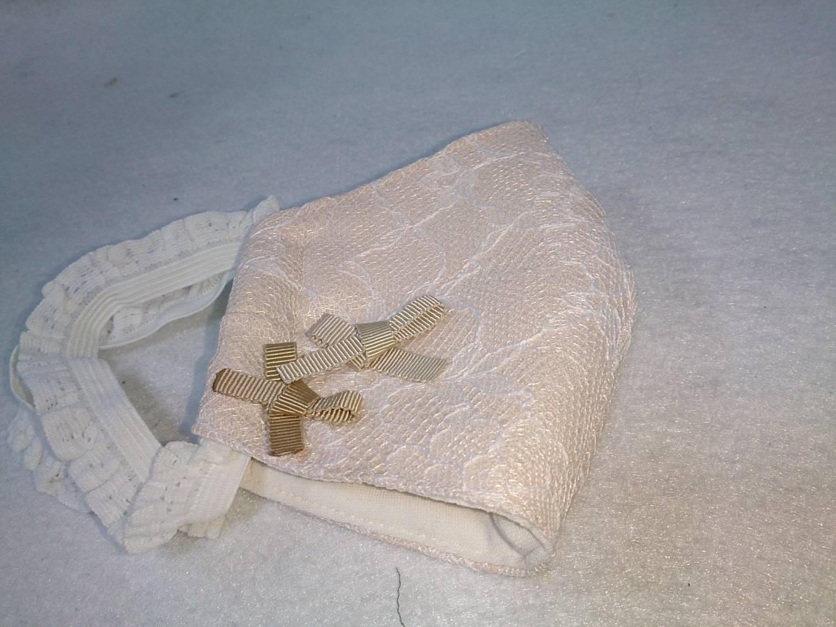 | ★ハンドメイド●リボン付き レース製 マスク レギュラーサイズ 1枚 | ||