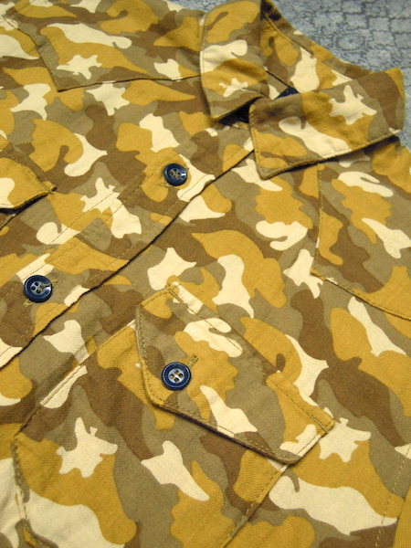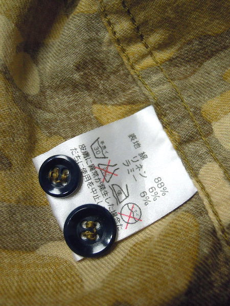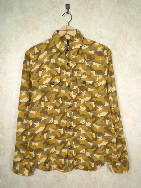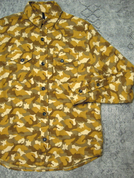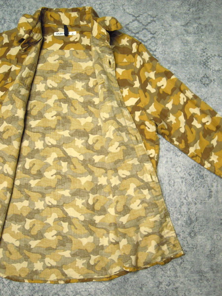 GAIJIN MADE 迷彩シャツ●メンズSサイズ/ブラウン/茶色/ガイジンメイド/薄手ネル/長袖/綿麻/コットン/リネン/ラミー