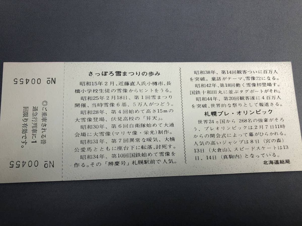 第22回さっぽろ雪まつり・札幌国際冬季スポーツ大会記念 急行券 【K4-16】