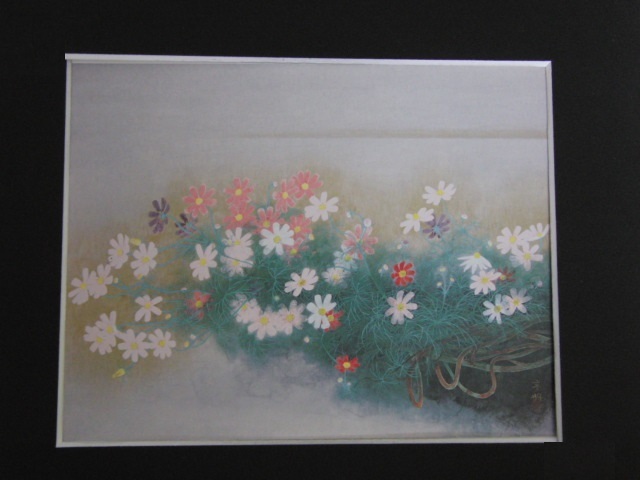 松本高明、【秋桜】、希少な額装用画集より、新品額装付、状態良好、送料込み、日本人画家