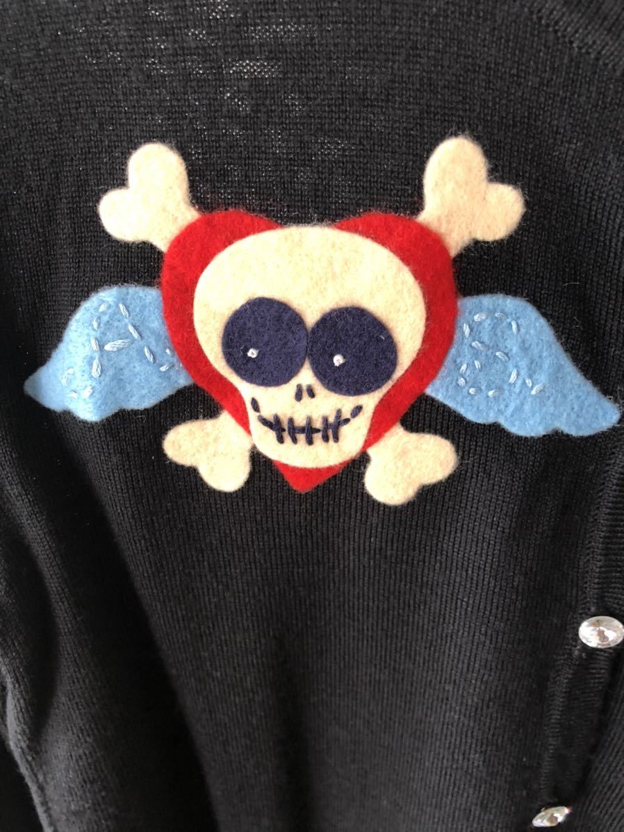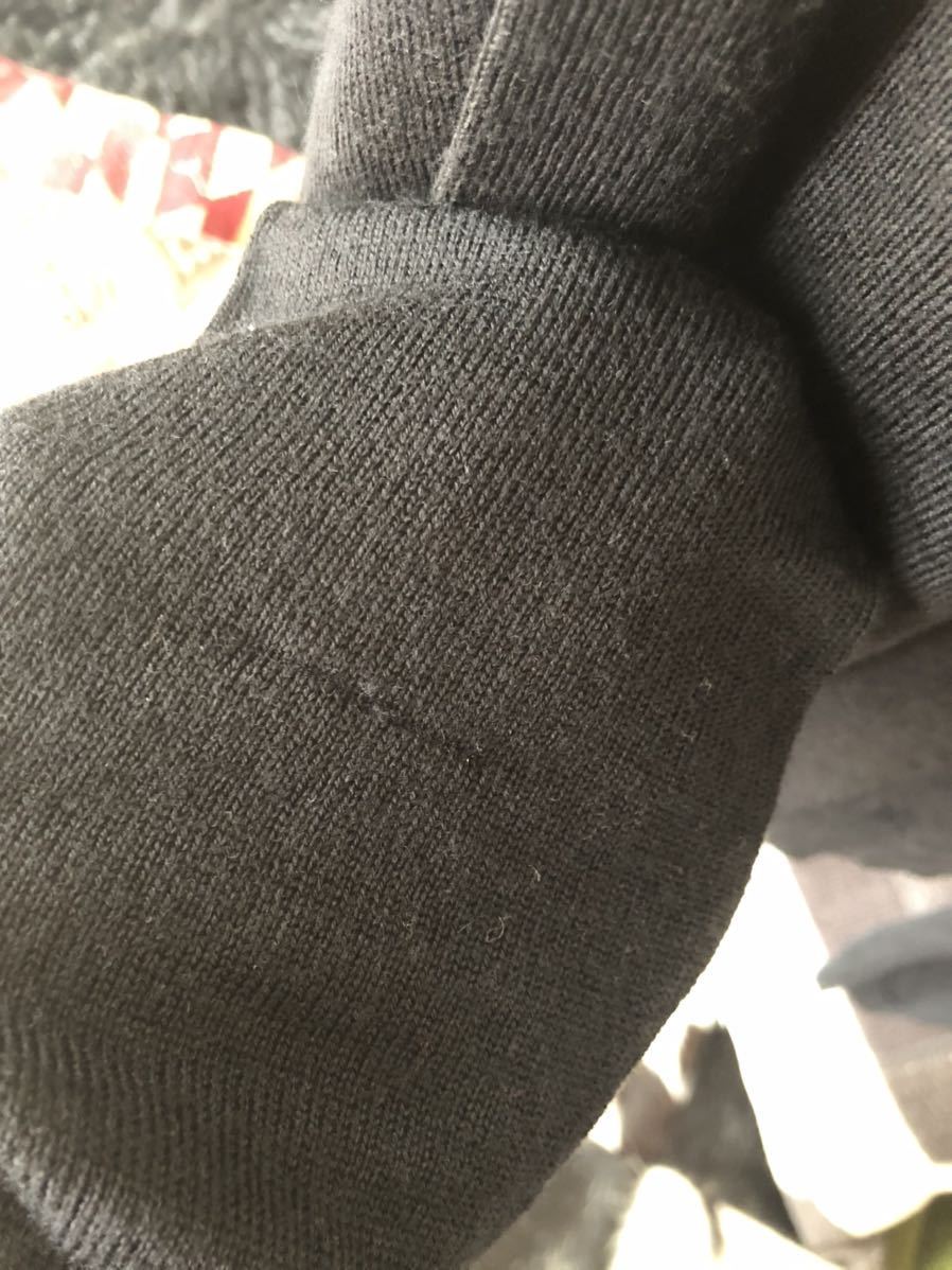 後ろ袖にニットの糸引っ掛けあり。6枚目の写真参照