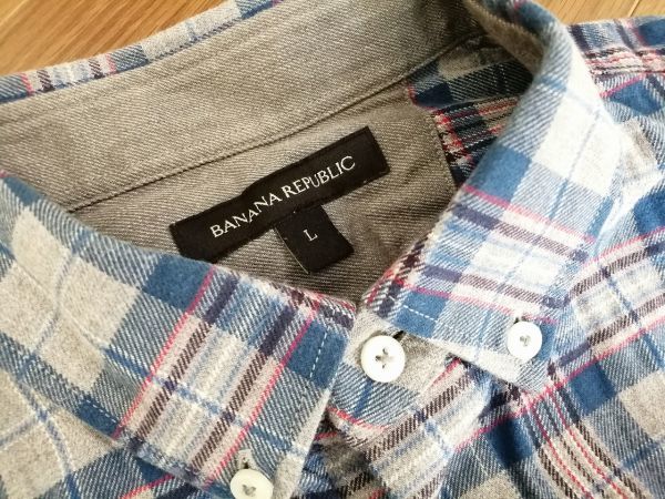 kkyj4244 ■ BANANA REPUBLIC ■ バナナリパブリック シャツ トップス ボタンダウン 長袖 チェック コットン ブルー 青 L