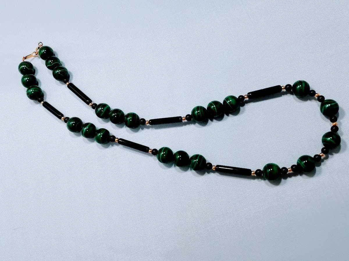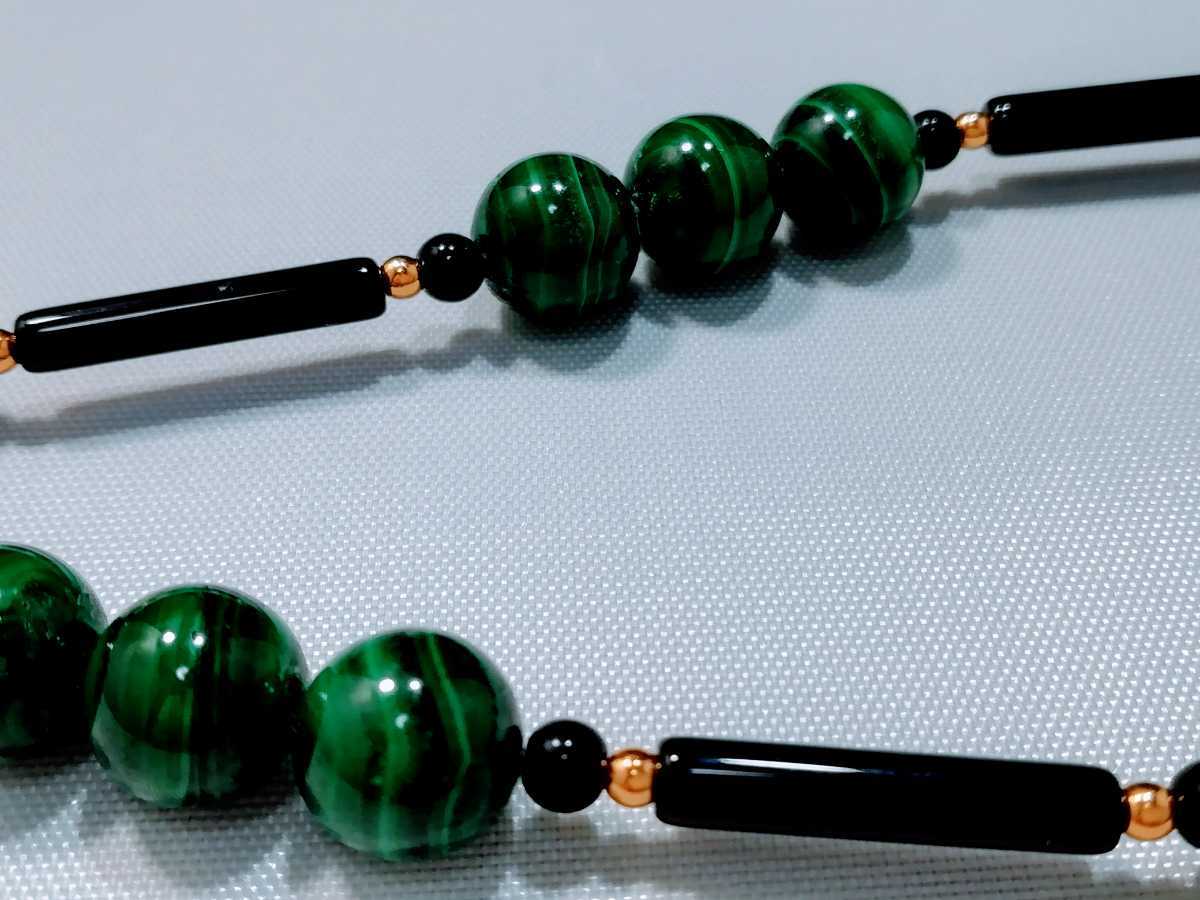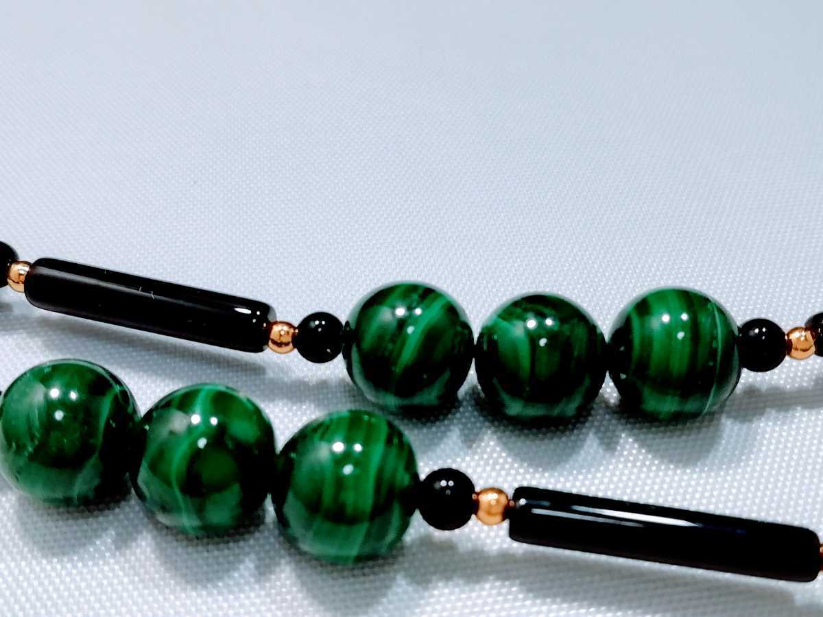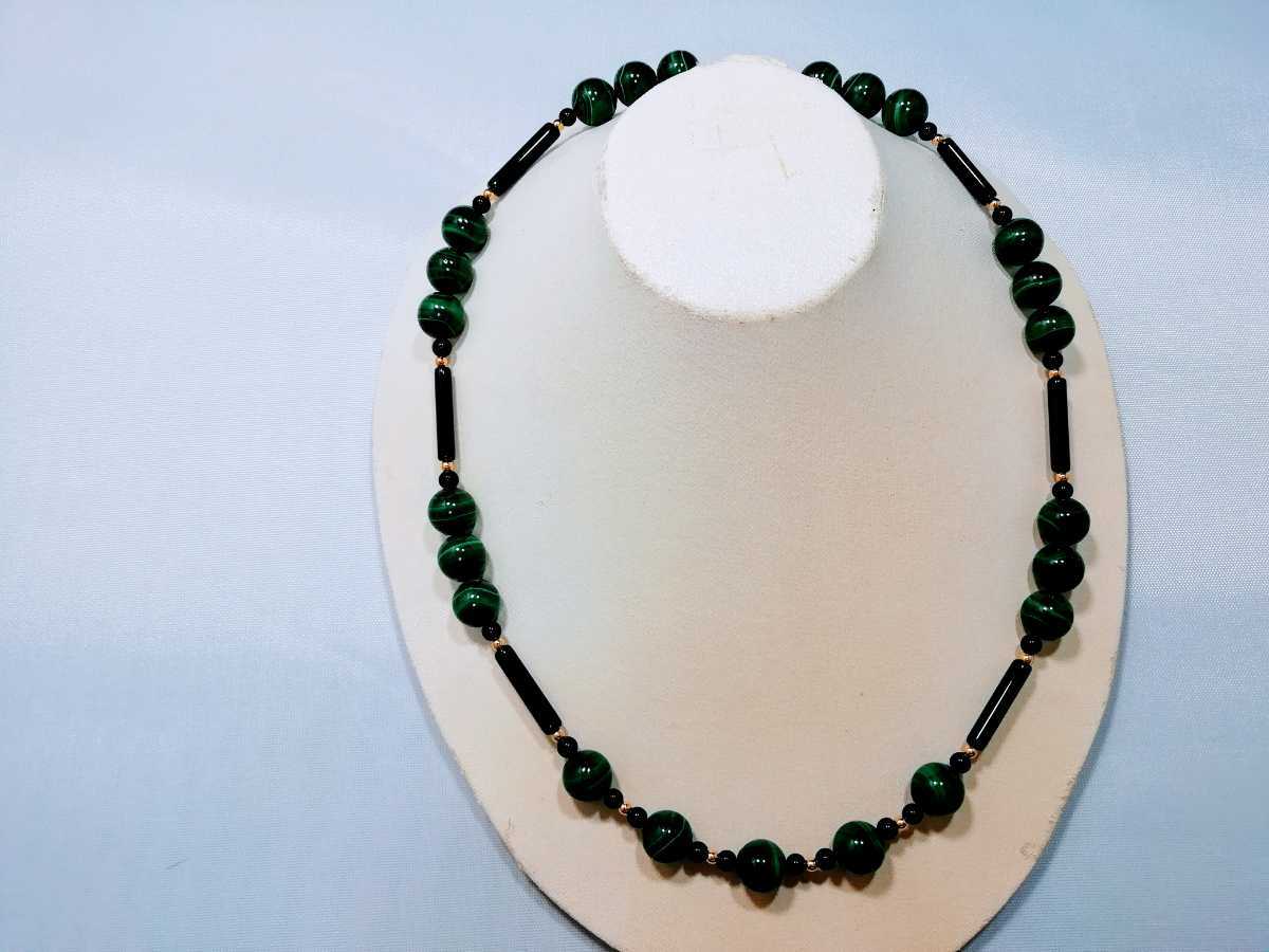 天然アフリカ翡翠Malakite&ファンシーオニキスデザインセミロングネックレス
