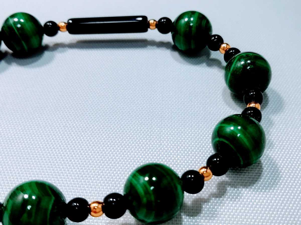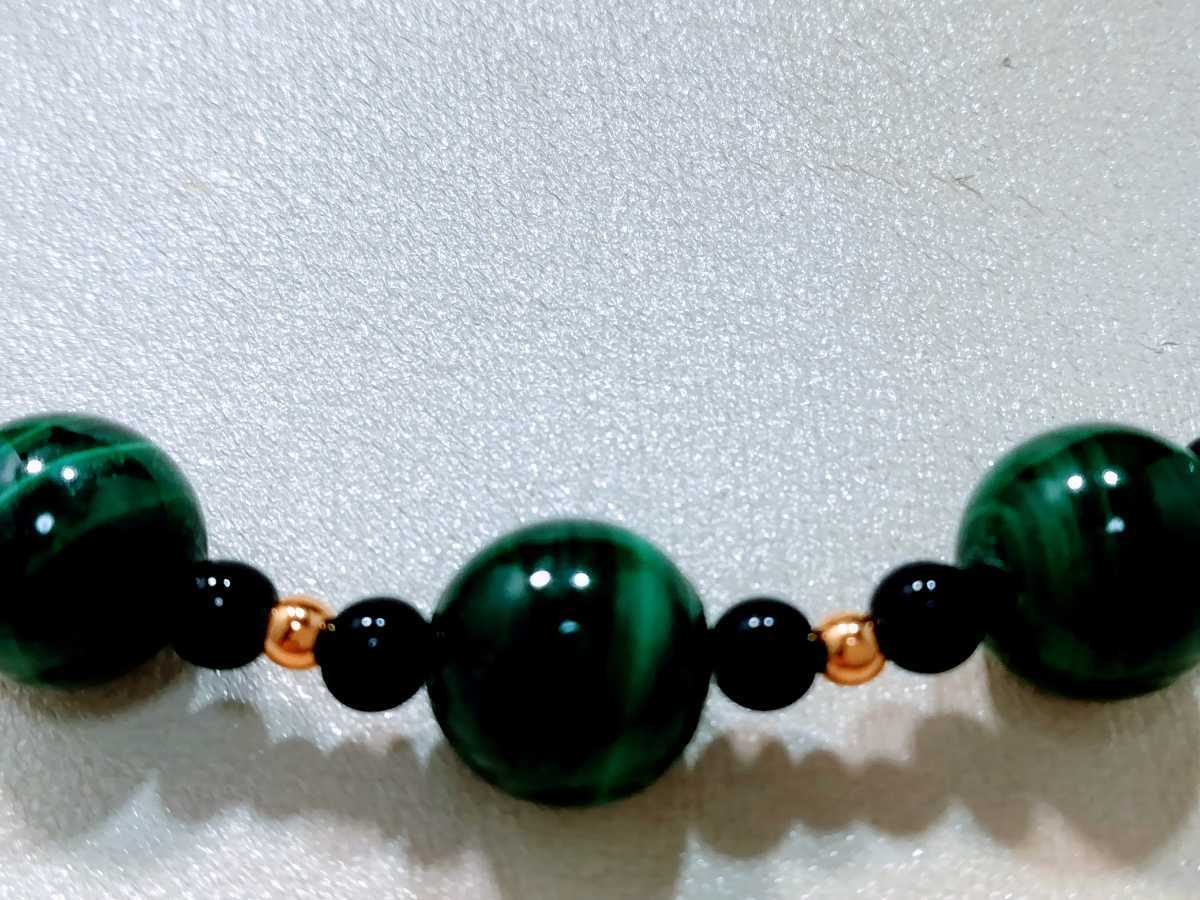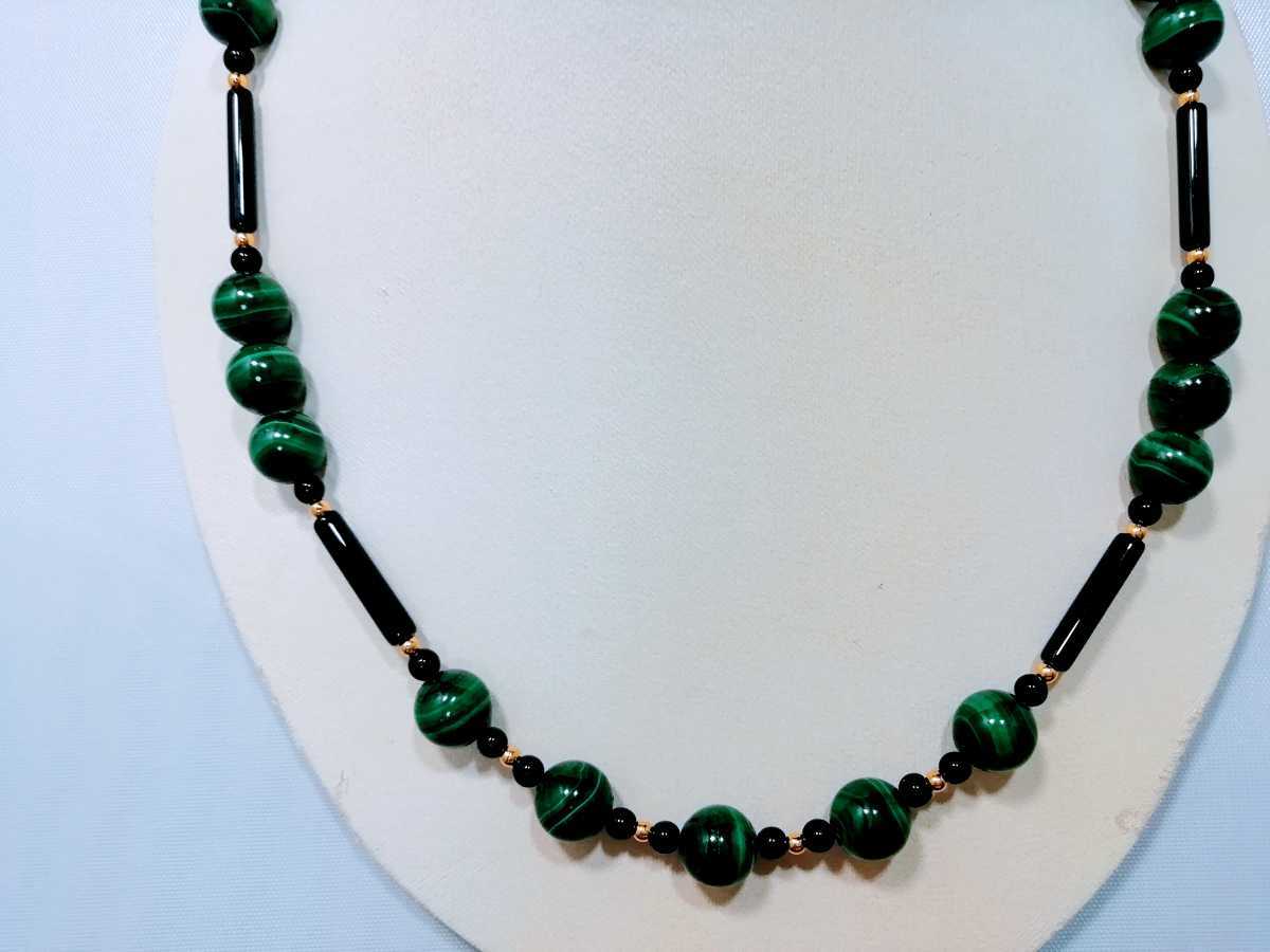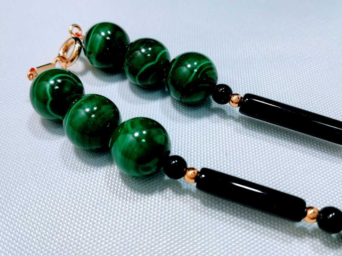 天然アフリカ翡翠Malakite&ファンシーオニキスデザインセミロングネックレス