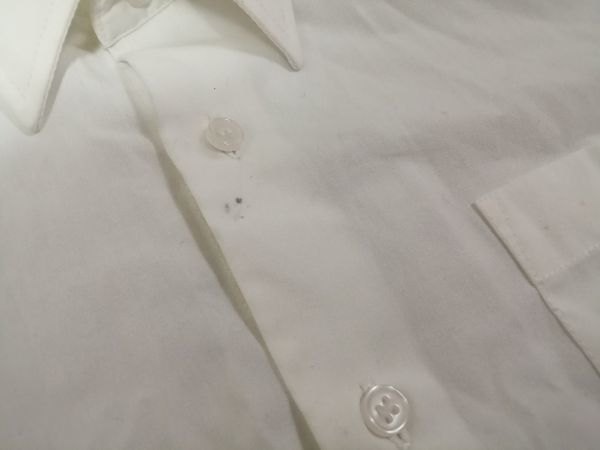 ダメージ箇所 :シミが数か所、襟汚れ、袖口の汚れがあります。