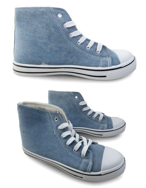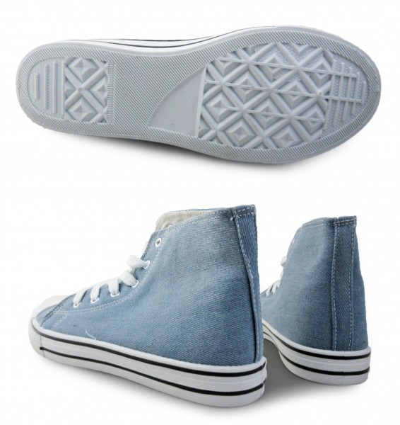 1円~2330-089新品AAAミッドカット/レースアップスニーカー23㌢BLUE/DENIM♂