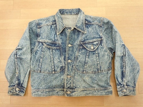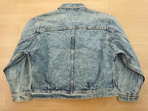 ●80~90年代頃の古着のケミカルウォッシュのジージャンです。あくまでも古着のため、ノークレームノーリターンでお願いいたします。使用感、薄汚れはございますが、穴などのダメージはございません。ケミカルウォッシュで、味の出た雰囲気です。