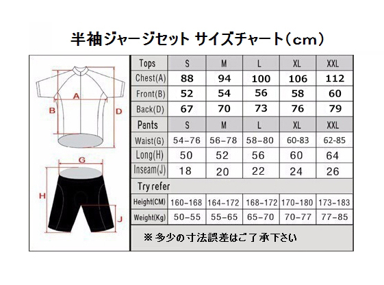サイズは上下 Sサイズ、パンツと半袖サイクルジャージのセットです。