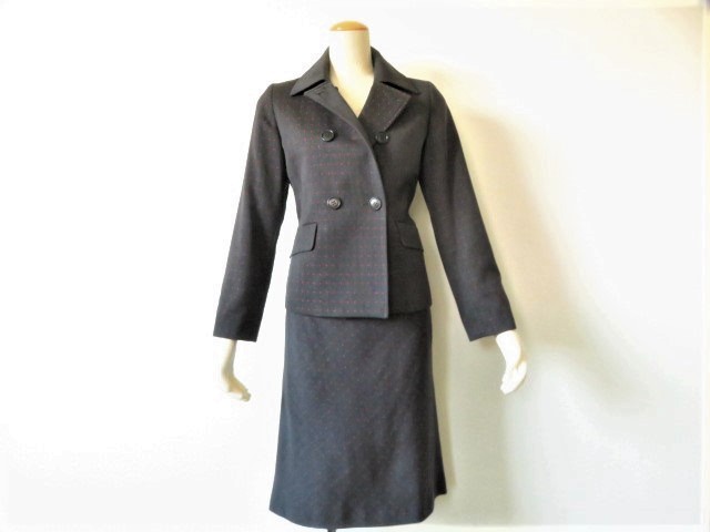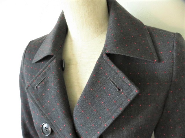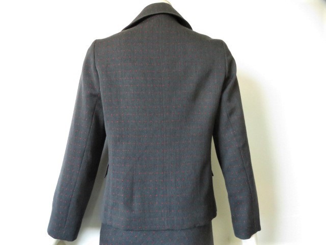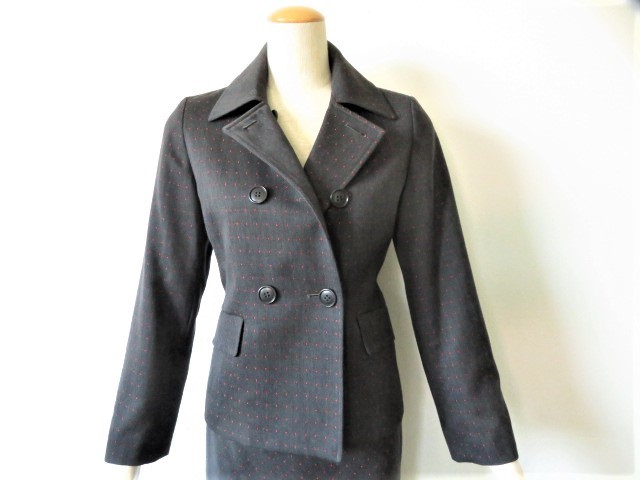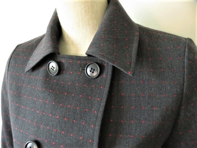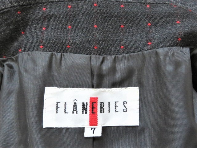 【flaneries】フラネリーの高級ウールクスーツ、お色はグレー生地に赤ドット柄です。