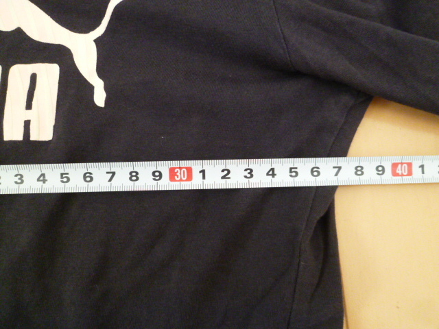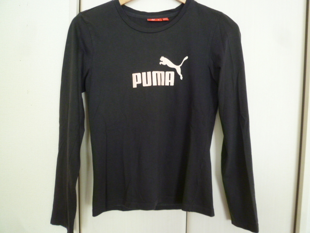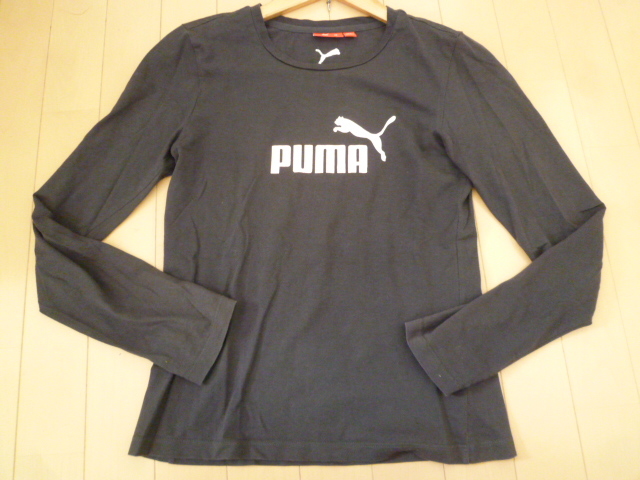 PUMA/プーマ○黒ストライプロゴマークプリント長袖ロンTシャツカットソーM/トップススポーツジムにブラック○T821
