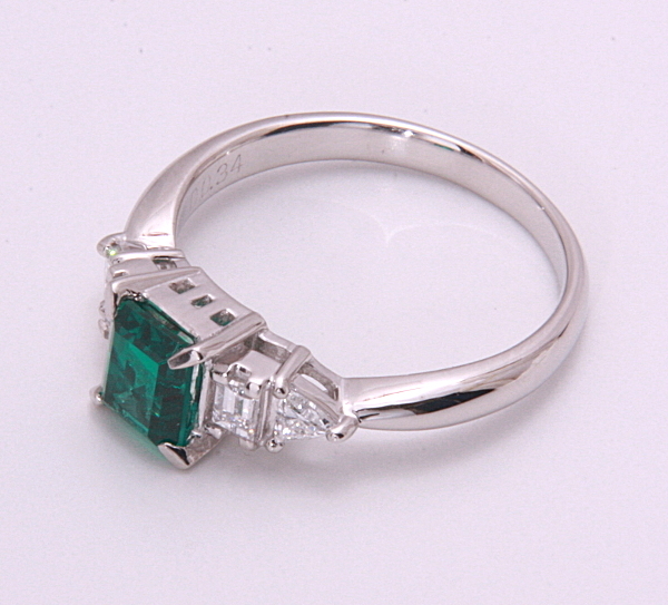 京セラムーンジュエリー★合成エメラルド0.63ct+ダイアモンドリングです。