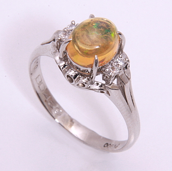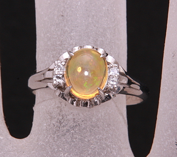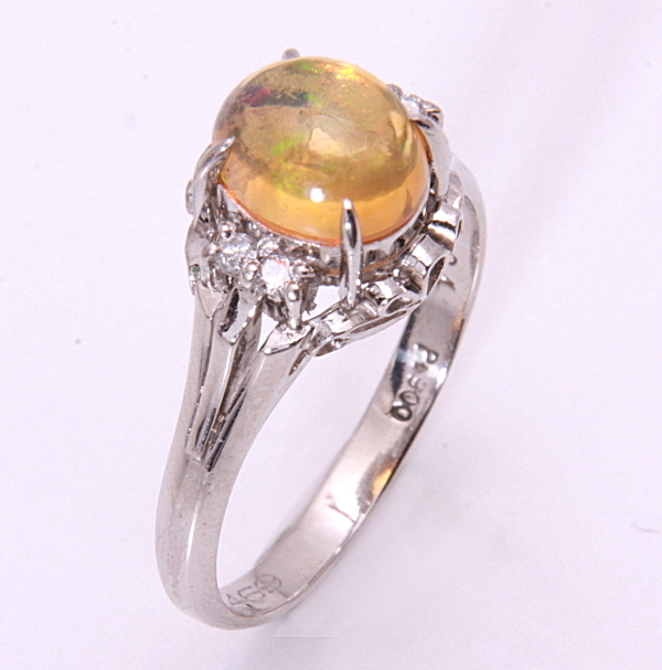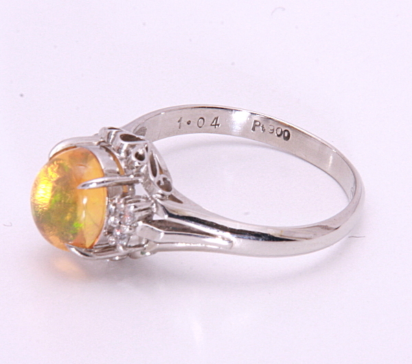 《質屋出品》Pt900★天然オパール1.04ct+ダイアモンドリング★C-4590