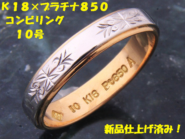 K18イエローゴールドとプラチナ850のコンビリングです。