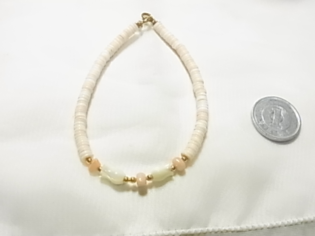 可愛い薄いピンク色 シェル? 桜貝調のカラー 華奢デザイン ブレスレット▽