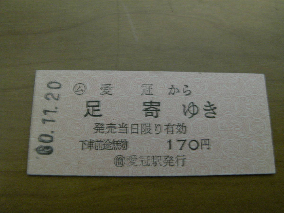 池北線 ム愛冠から足寄ゆき 170円 昭和60年11月20日 簡 愛冠駅発行