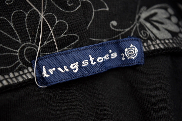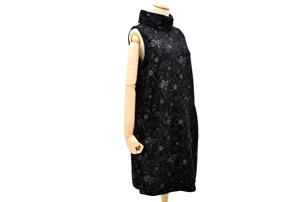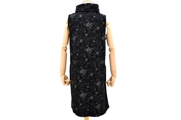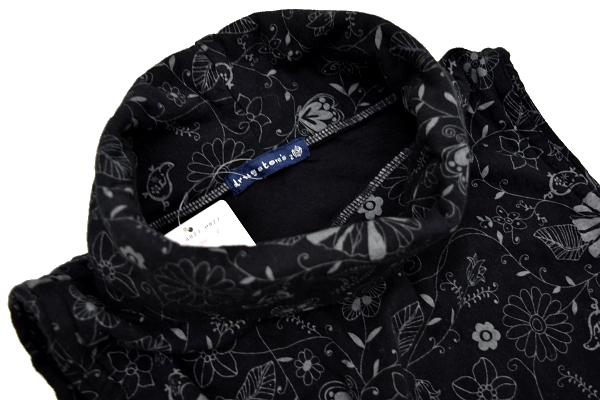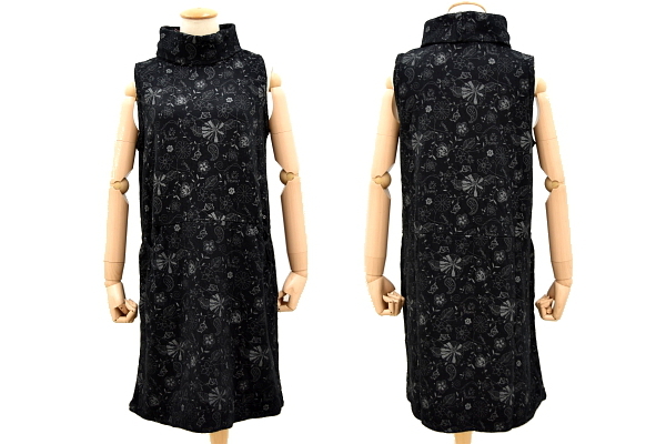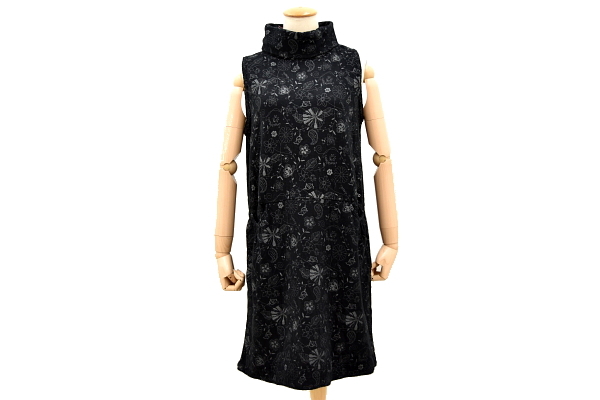 O-244★新品★drugstore's ドラッグストアーズ★黒色ブラック スウェット地 花柄 プリント タートルネック ノースリーブワンピース 2-M