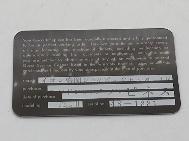 Gucci グッチ 無記名ギャランティカード 店舗印有り 純正品