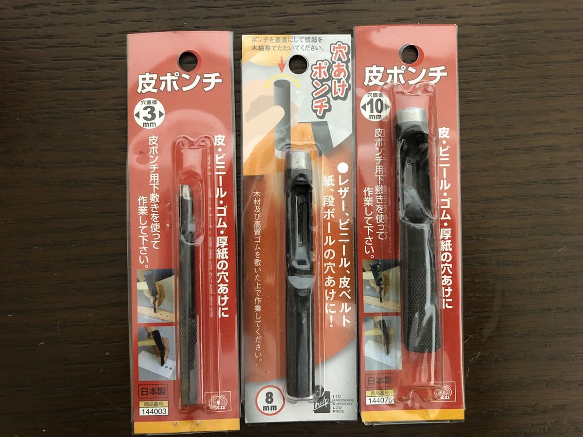 皮ポンチ3種類セット、サイズは3㎜/6㎜/8㎜です。皮製ストラップの穴あけ重宝します。ベルトタイプのストラップには3㎜、エンドピンがアコギジャックを兼ねているタイプのエレアコには6㎜もしくは8㎜サイズが重宝します。