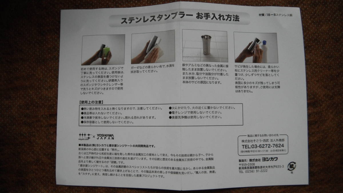 磨き屋シンジケートxヨシカワ タンブラー 一口ビール 18-8 ステンレス ミラー仕上げ 説明書付 / Efient サイズ約:口径6,2x高さ11cm 箱にダメージがありますのでご理解いただける方、ノークレームノーリターンでご入札お願いします。送料別途はヤマト運輸を予定しております。お支払方法はヤフーかんたん決済、よろしくお願いいたします。