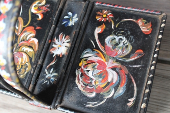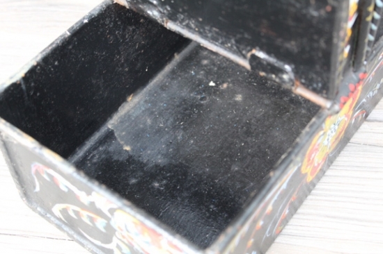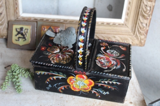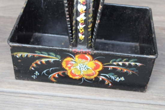 ビンテージ アンティーク【イギリス バスケット型 アイアンケース】ハンドペイント TIN缶 ハンドル 持ち手 トレー