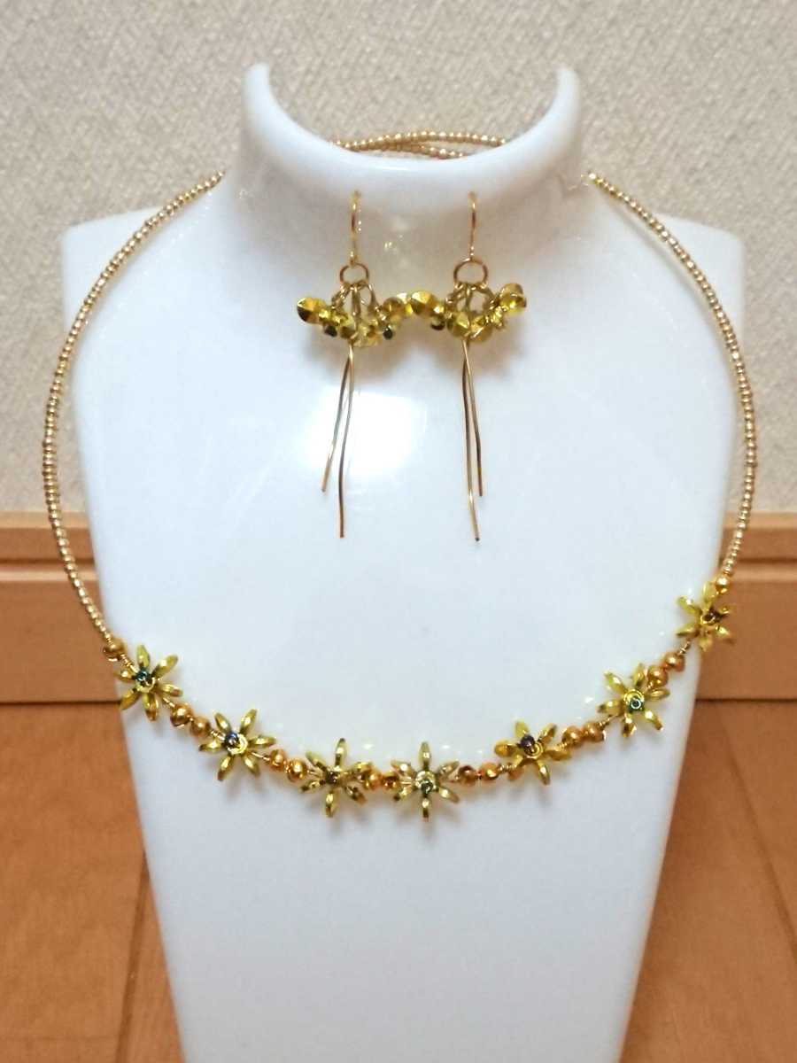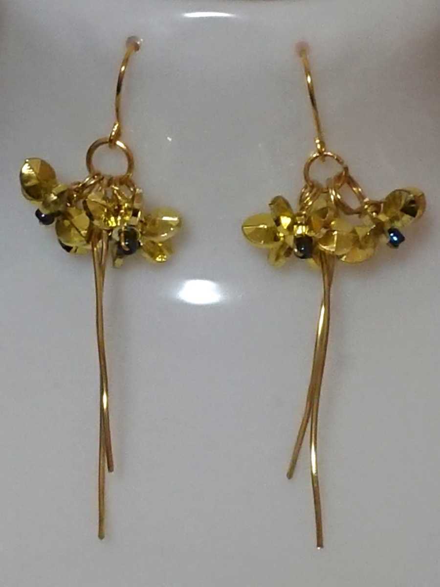 ゴールドのフックピアスにゴールドのお花のビーズを合わせてピアスを作りました。