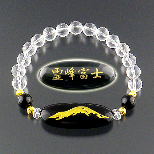 富士山・霊峰富士ブレスレットブラックオニキスプレート&白水晶