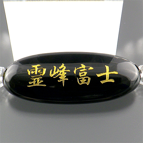 素材:白水晶15個(8mm珠/128面カット)、2個(6×3mm/カット)、オニキス1個(40mm×15mm 富士山刻印)、2個(8mm珠)、ビーズパーツ4個(4mm珠 真鍮)