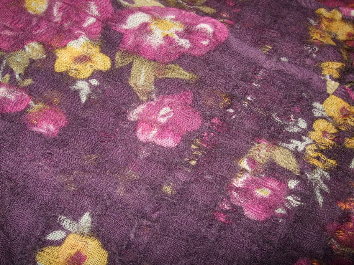 使用状況:使用品ですが、良好、ただ繊細なものですので、多少の糸の出などはご了解ください。華やかなパープルで、マフラー代わりにもなります。