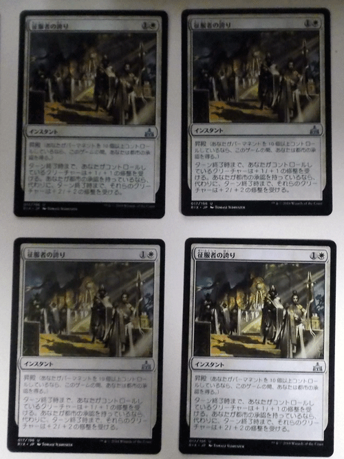 MTG日本語4枚セット/征服者の誇り/イクサランの相克/アンコモンです。中古品扱いですので、神経質な方、美品をお求めの方は入札をご遠慮ください。
