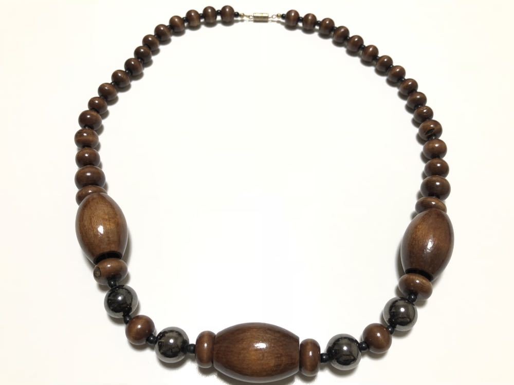 木製の大振りのデザインネックレスです。